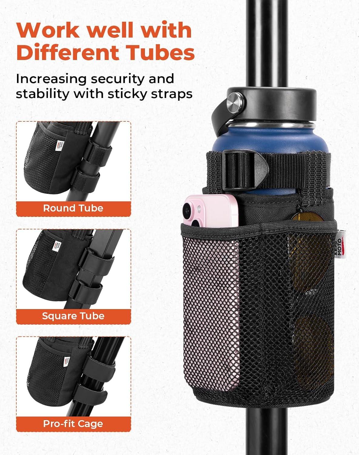 Durable material: KEMIMOTO water bottle holder is made of 600D oxford fabric, which is durable, washable, and not easy to deform. If you get dust or mud on the drink holder, easy to wash and keep scooter cup holder clean and a cotton pad placed in the middle in case of bouncing your bottle on the rugged and rough road
