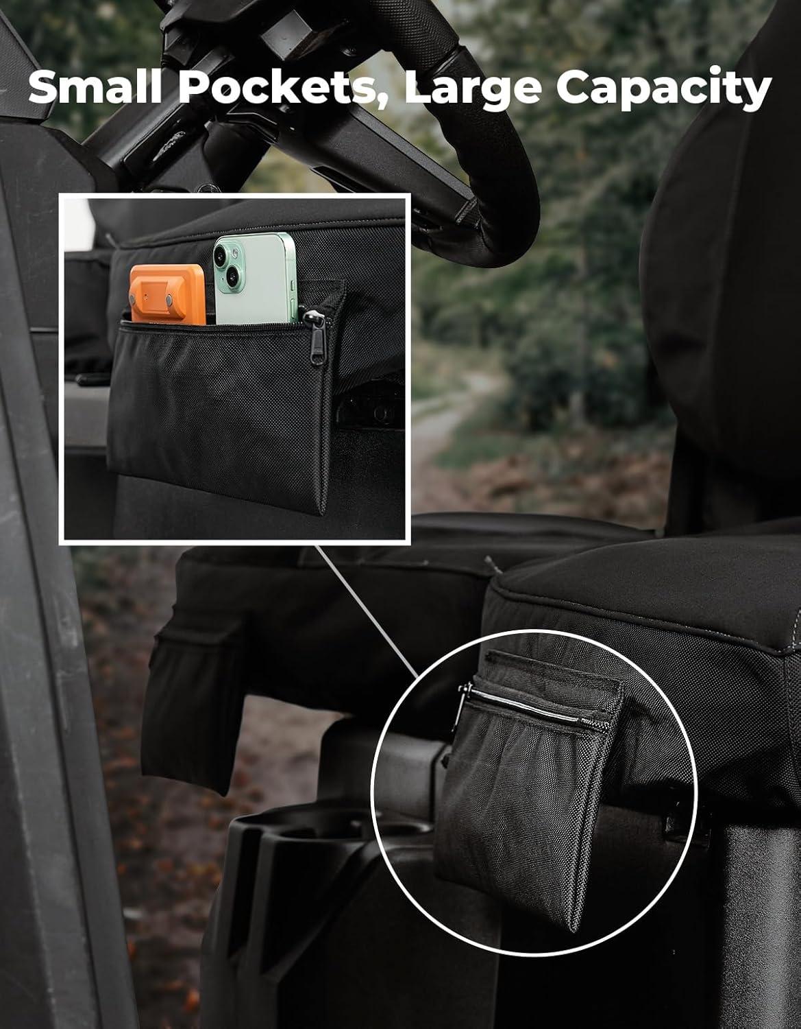 More Convenient Design: The zippered handy pockets on the passenger and driver bottom covers provide a convenient storage solution for small items that you and your passenger may need quick access to, such as a phone, wallet, keys, or tools. They help keep these items clean, dry, and within reach, preventing them from getting lost or damaged during the ride
