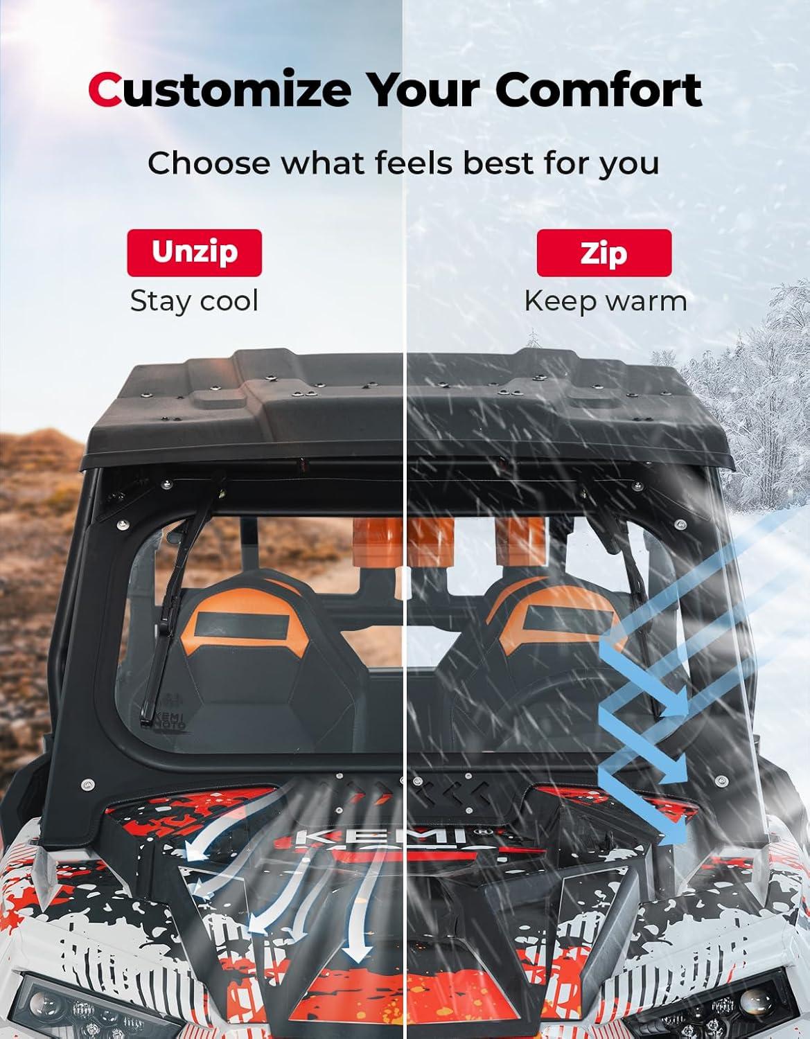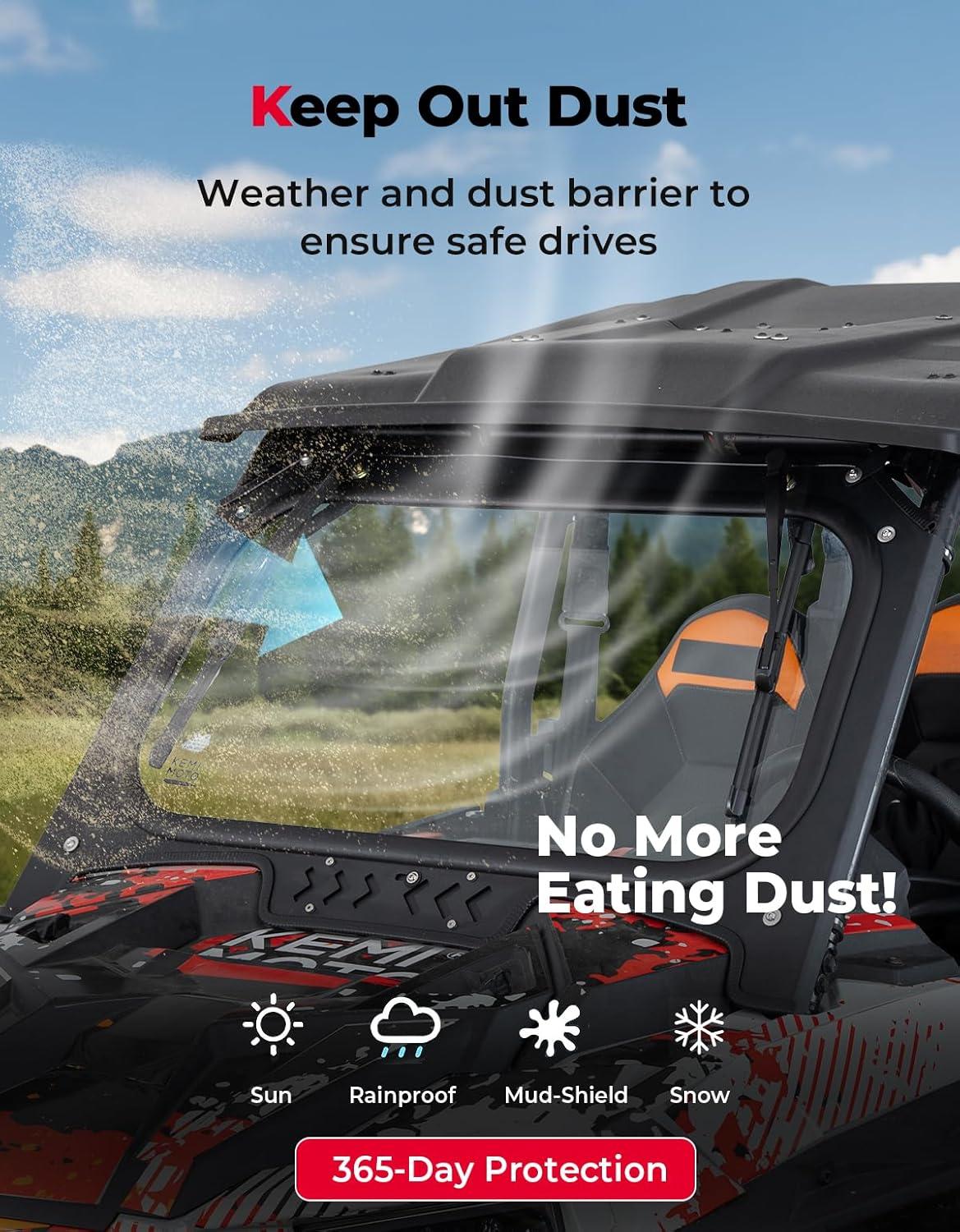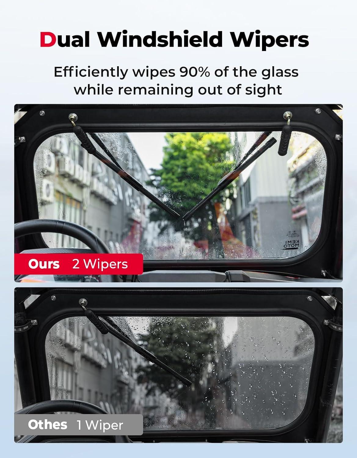 2 Windshield Wipers: The KEMIMOTO windshield is equipped with 2 wipers and features a longer handle design, allowing you to quickly clear water droplets or debris from the windshield with one-hand operation. The dual wipers can cover over 90% of the glass, while single wipers on the market only cover 50%