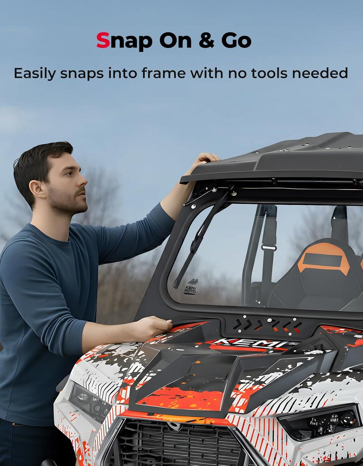Easy Installation: Due to the weight, you may require two persons to install it together. But the process is quite simple. Just connect the wipers and secure the clamps in place. This windshield is only compatible with 2019-2023 Polaris RZR XP 1000 / RZR XP Turbo 2 and 4 seater
