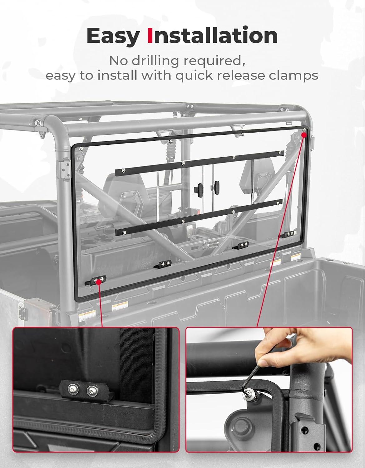 Sliding Vents for Airflow: 2 in 1 design for year-round riding. Works as both a vented rear window and a full window. Adjustable sliding vents allow cool airflow to enter your UTV in the Summer. In the Winter, you can close the vent to get a full window against the cold wind