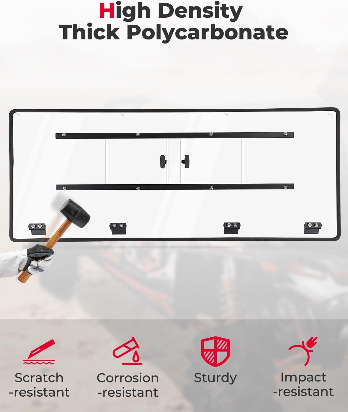 Strong & Durable: Made of 1/5 inch thick PC material, KEMIMOTO rear window is shock-, shatter- and corrosion-resistant, 250x stronger than glass and 25x stronger than acrylic. Polycarbonate windshield ensures good light transmission and helps soften UV radiation