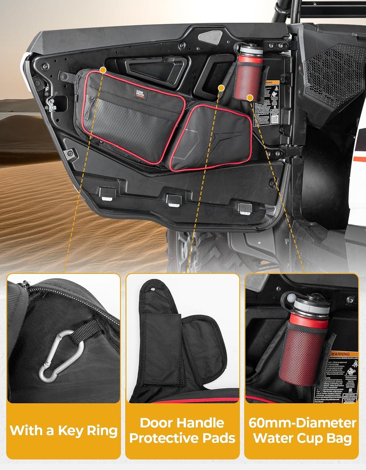 More Upgraded : There is a 60mm diameter water cup bag that can be hidden with magic tape when not needed. Designed with a key chain, convenient to find keys and other small tools. The door handle protective pad can avoid the hand being scratched by the original door frame and optimize the use experience when closing the doors