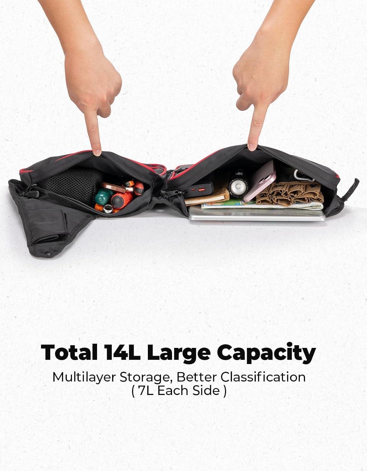 Large Space : Front side door bags offer 14L multi pocket storage space (7L Each Side) for all your essentials, such as phones, wallets, snacks and first-aid appliances. It has a mesh pocket to provide storage space for other little things