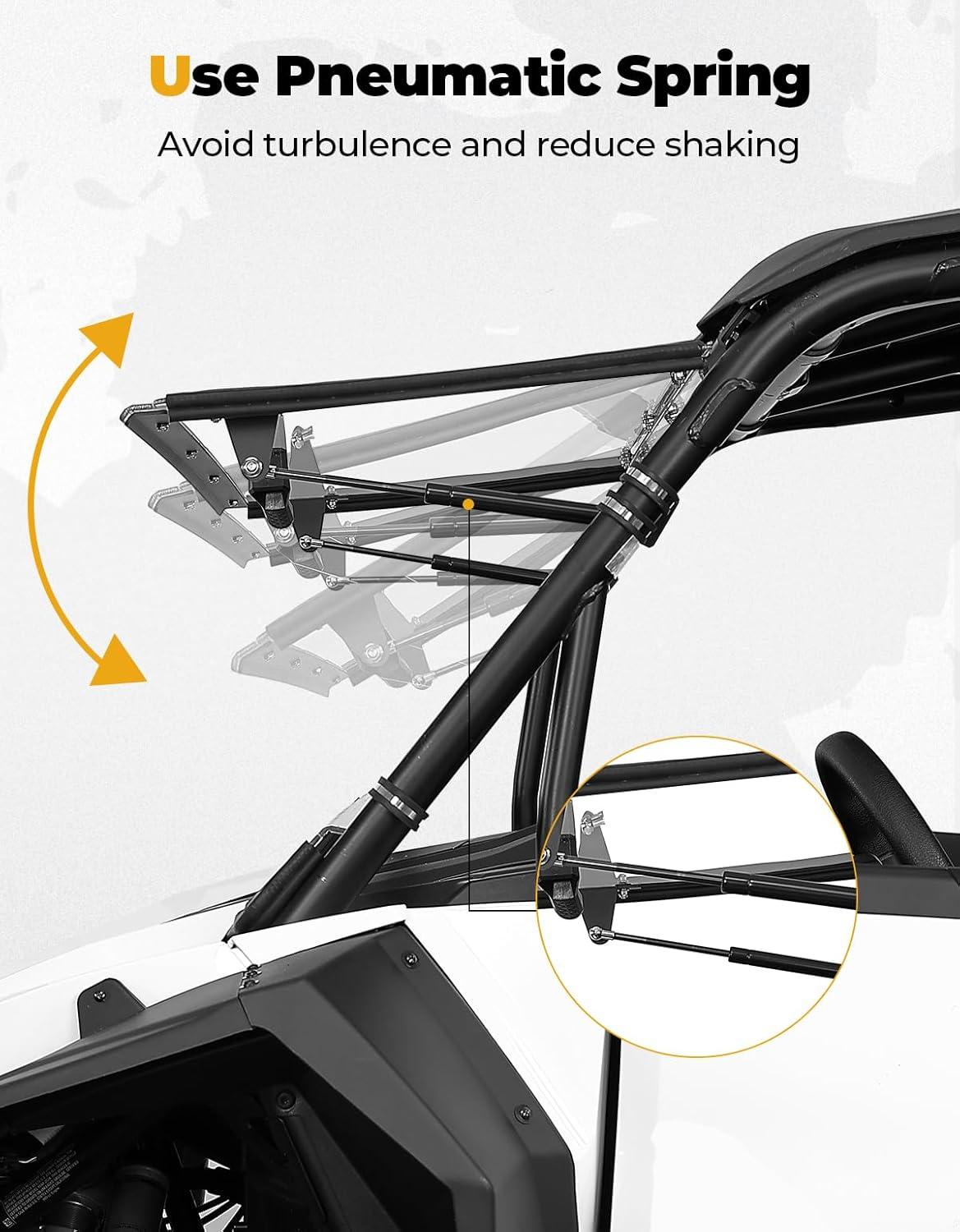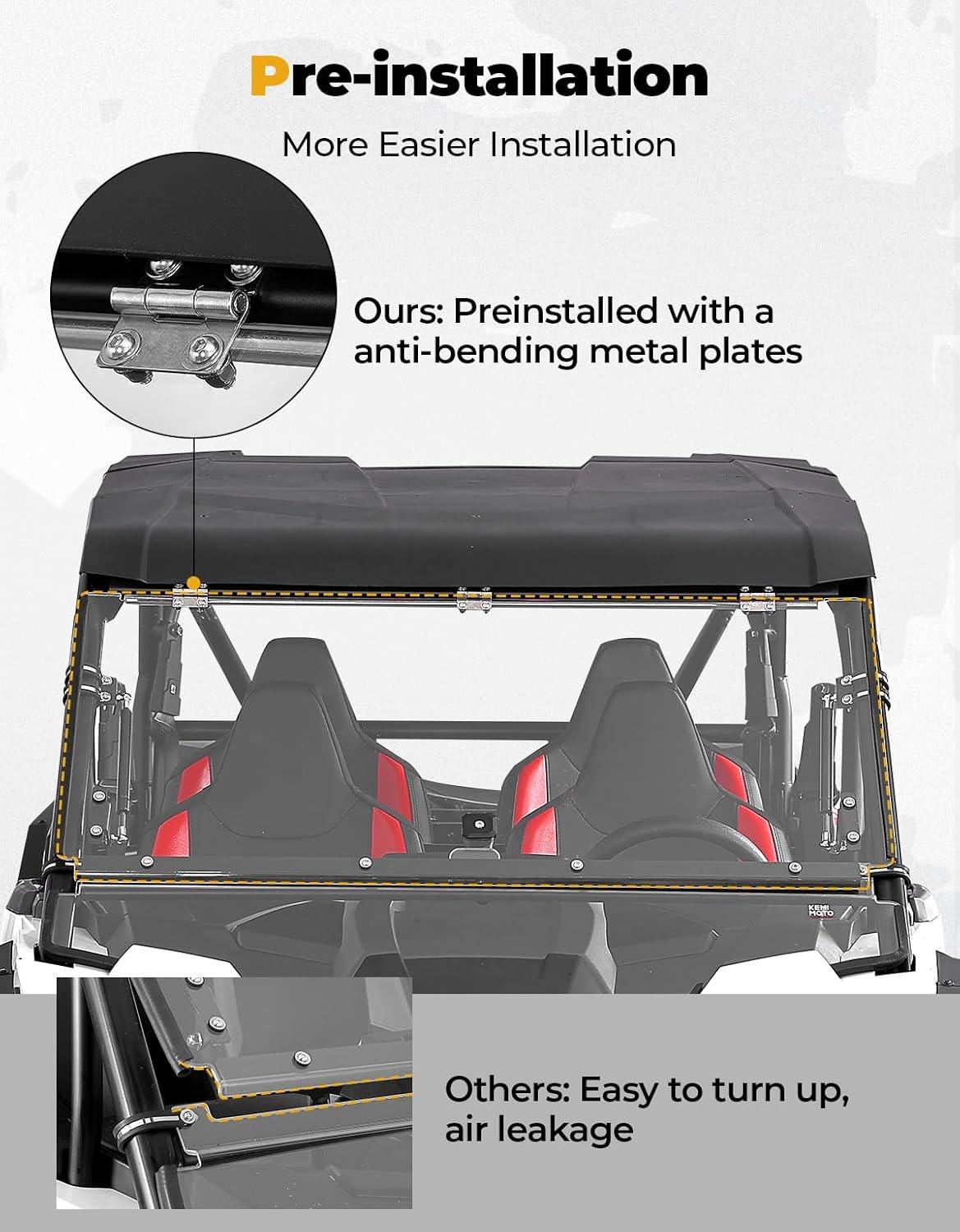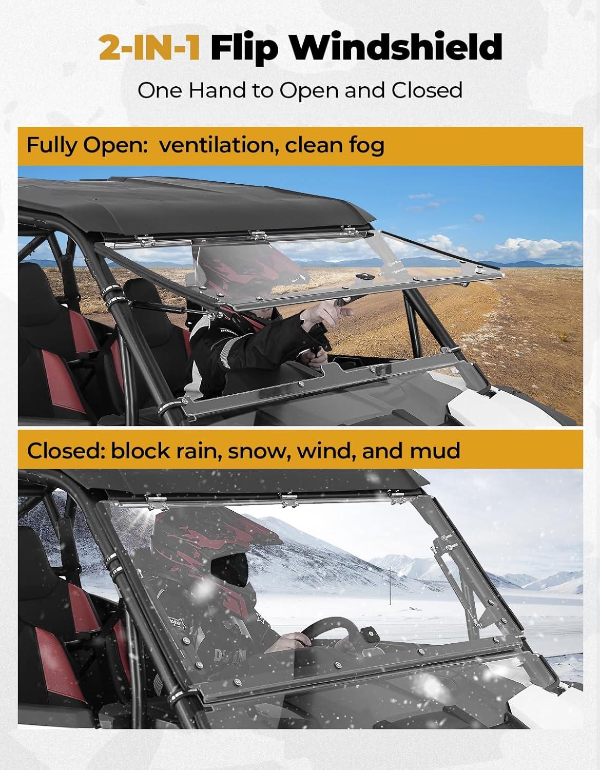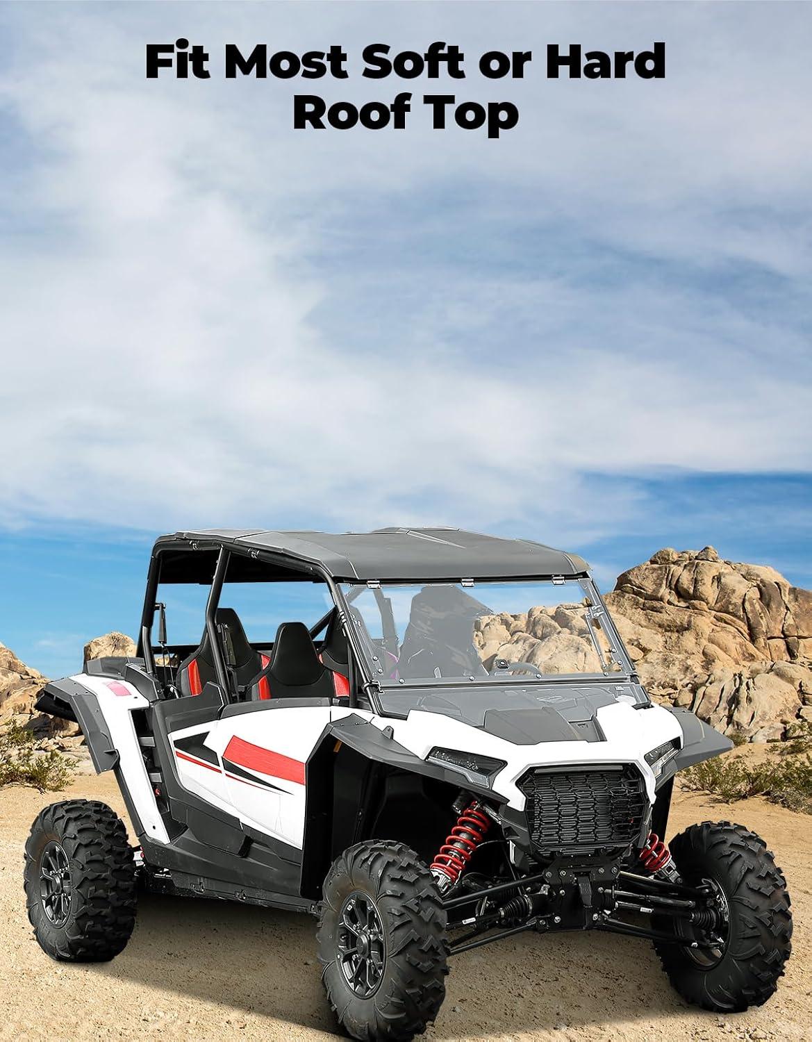 Fitment: This xp 1000 flip front windshield is compatible with 2024 2025 Polaris RZR XP 1000 / RZR XP 4 1000. Note: It is compatible with most hard or soft roofs