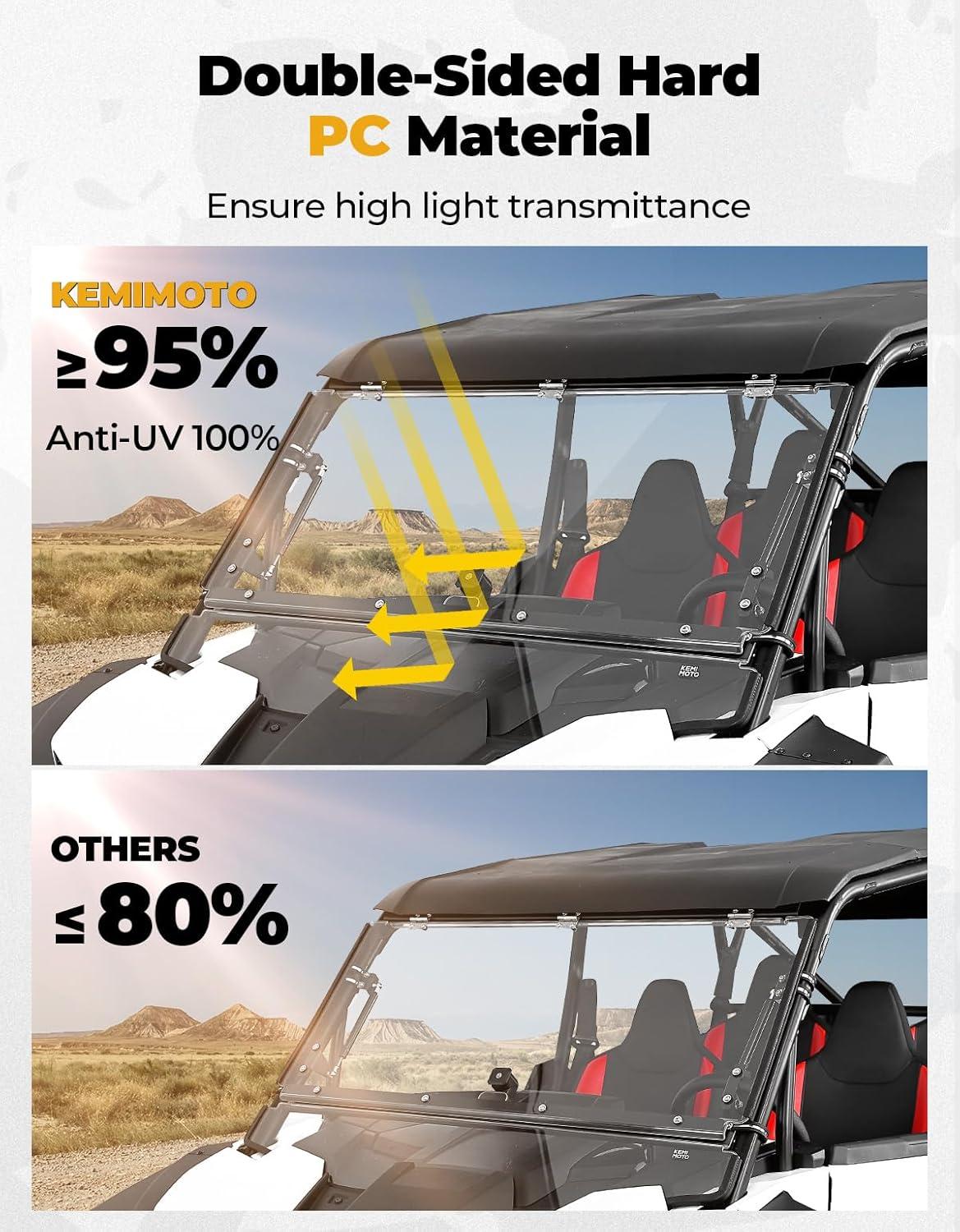 Superior Clarity: With 95% light transmittance, this full flip windshield provides excellent visibility and reduces glare. This xp 1000 front flip window allows a clear driving experience