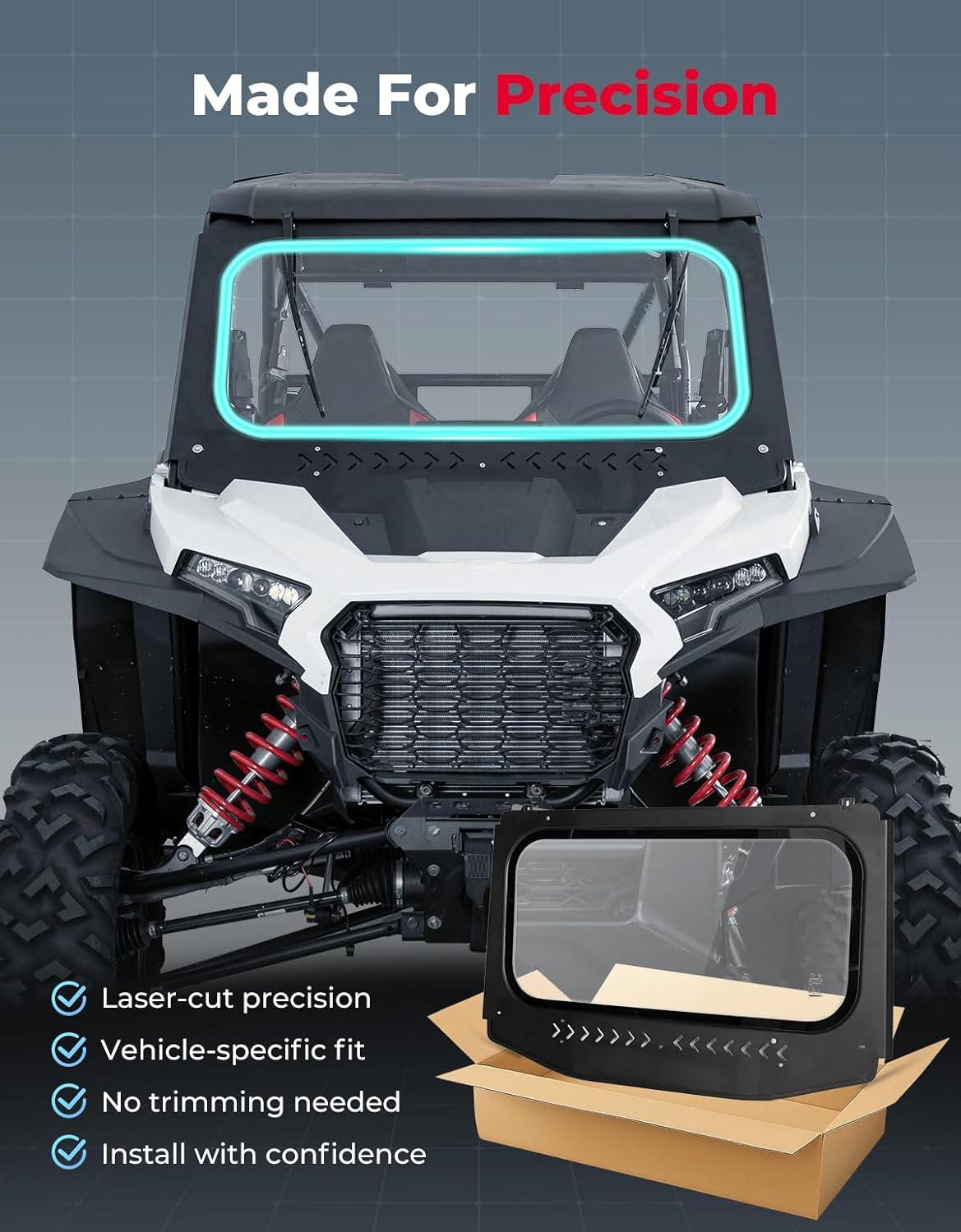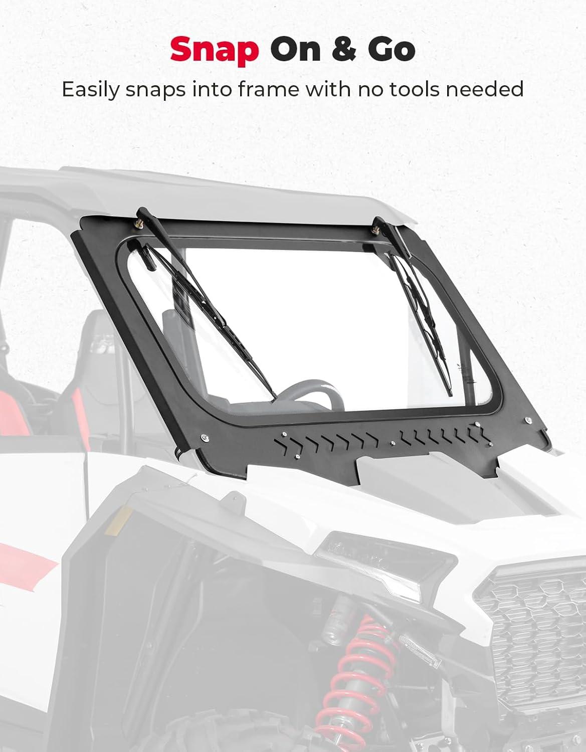 Easy Installation: Due to the weight, you may require two persons to install it together. But the process is quite simple. Just connect the wipers and secure the clamps in place. This windshield is only compatible with 2024 2025 2026 Polaris RZR XP 1000 / RZR XP 4 1000 / RZR XP S 1000 / RZR XP S 4 1000