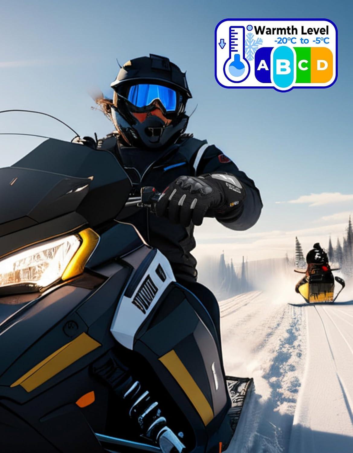 UPGRADED LONG-LASTING SAFE BATTERY: Our heated motorcycle gloves come with two 7.4V 3000mAh rechargeable batteries, certified by FCC and UL 2054 for safety and reliability. These batteries feature flame-retardant casings and protective circuits, boosting overall safety. The Type-C charging port design means you don't need extra adapters, adding convenience. Plus, the gloves have a battery level display to easily check how much power is left