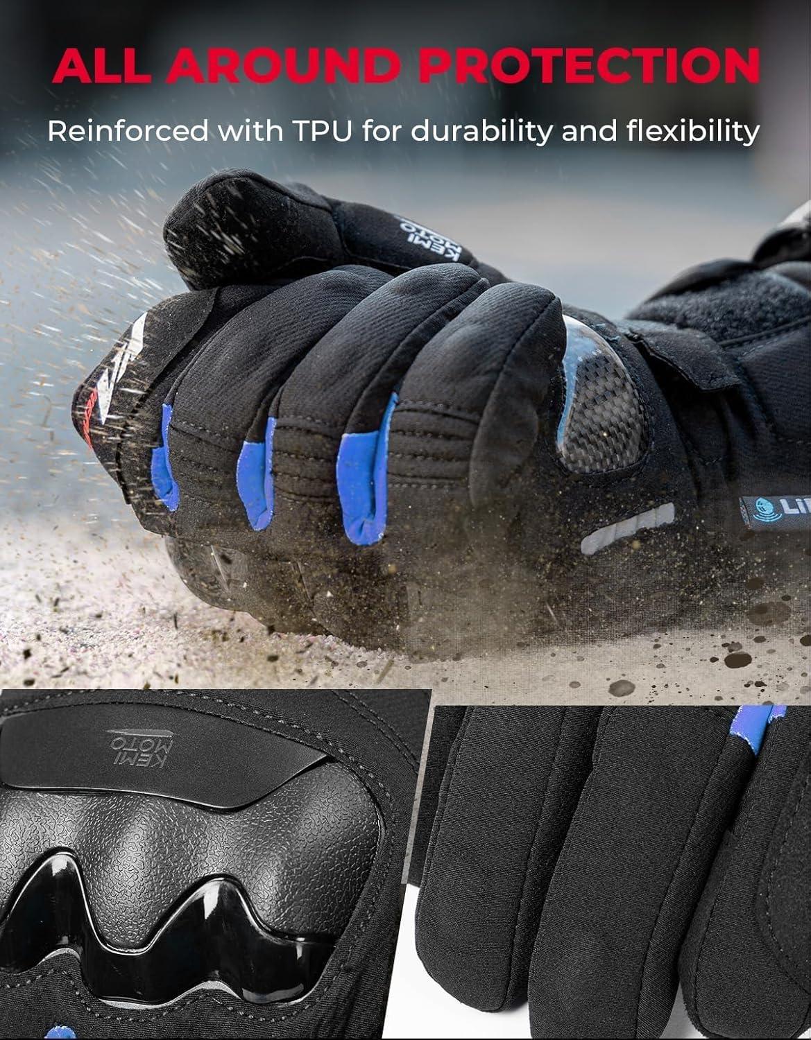 KEMIMOTO 2025 Version Heated Motorcycle Gloves for Men and Women Dual-Zone Control with Hard Protective Shields, 7.4V 3000mAh Rechargeable Battery, Waterproof, Touchscreen(Blue)