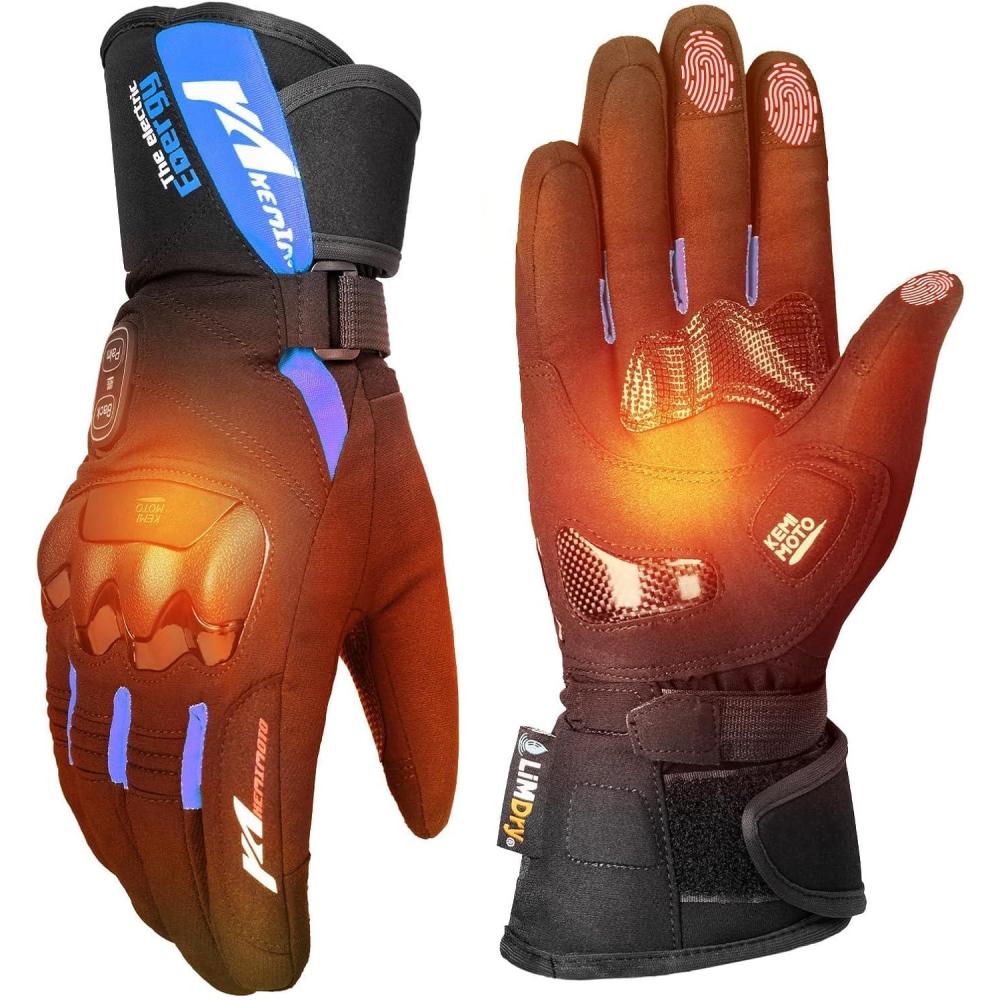 KEMIMOTO ALL-PURPOSE HEATED GLOVES: No More Wet Hands! These gloves feature advanced LIMDRY technology for superior waterproof and windproof protection. The splash-resistant exterior and internal layer block cold water and wind. A silicone shell protects your knuckles, while PVC leather adds durability and grip. Ideal for skiing, motorcycle riding, hunting, ice fishing, sledding, and snow shoveling. It also makes a thoughtful and comfortable Christmas gift for both men and women