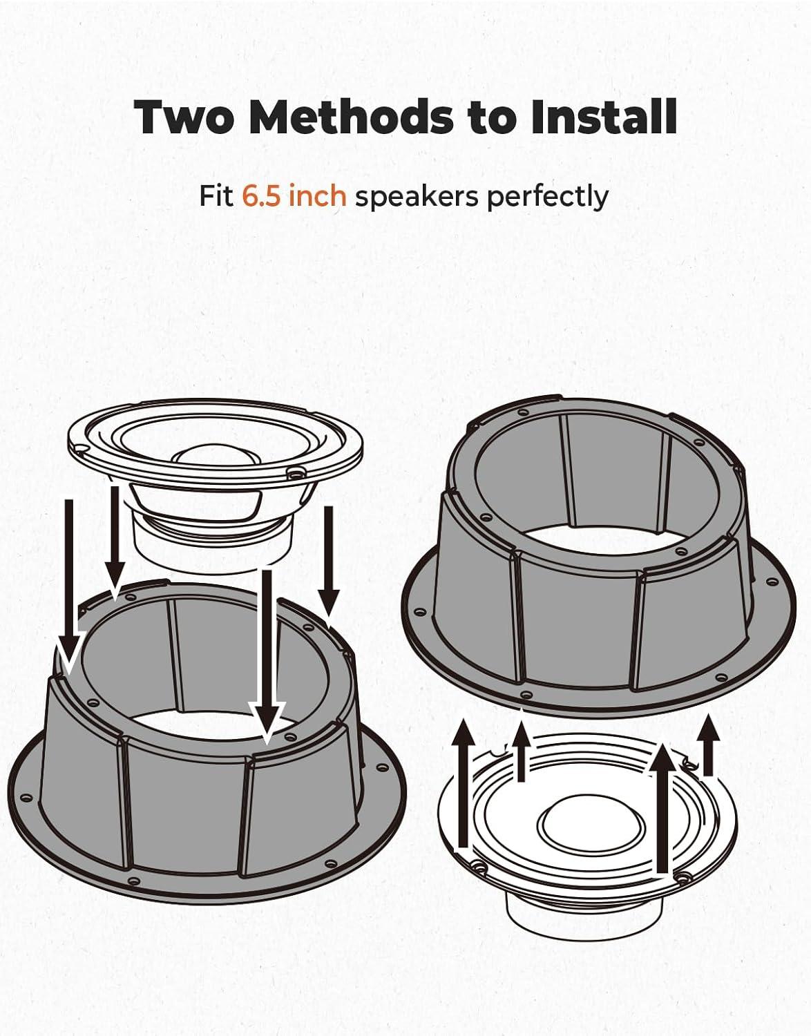 Sealed Pad: Different from other products on the market, KEMIMOTO 6.5 speaker box pods are designed with sealed pad, it can help speakers to be mounted tightly and prevent sound leakage, which will give you better user experience and sound enjoyment
