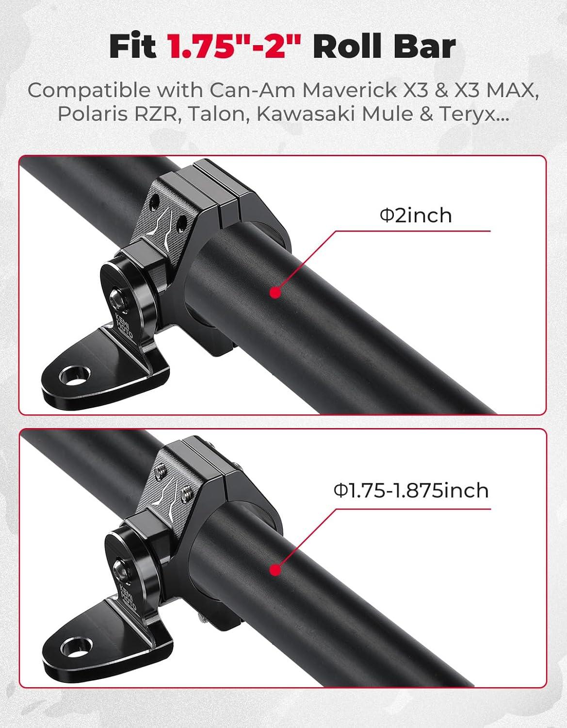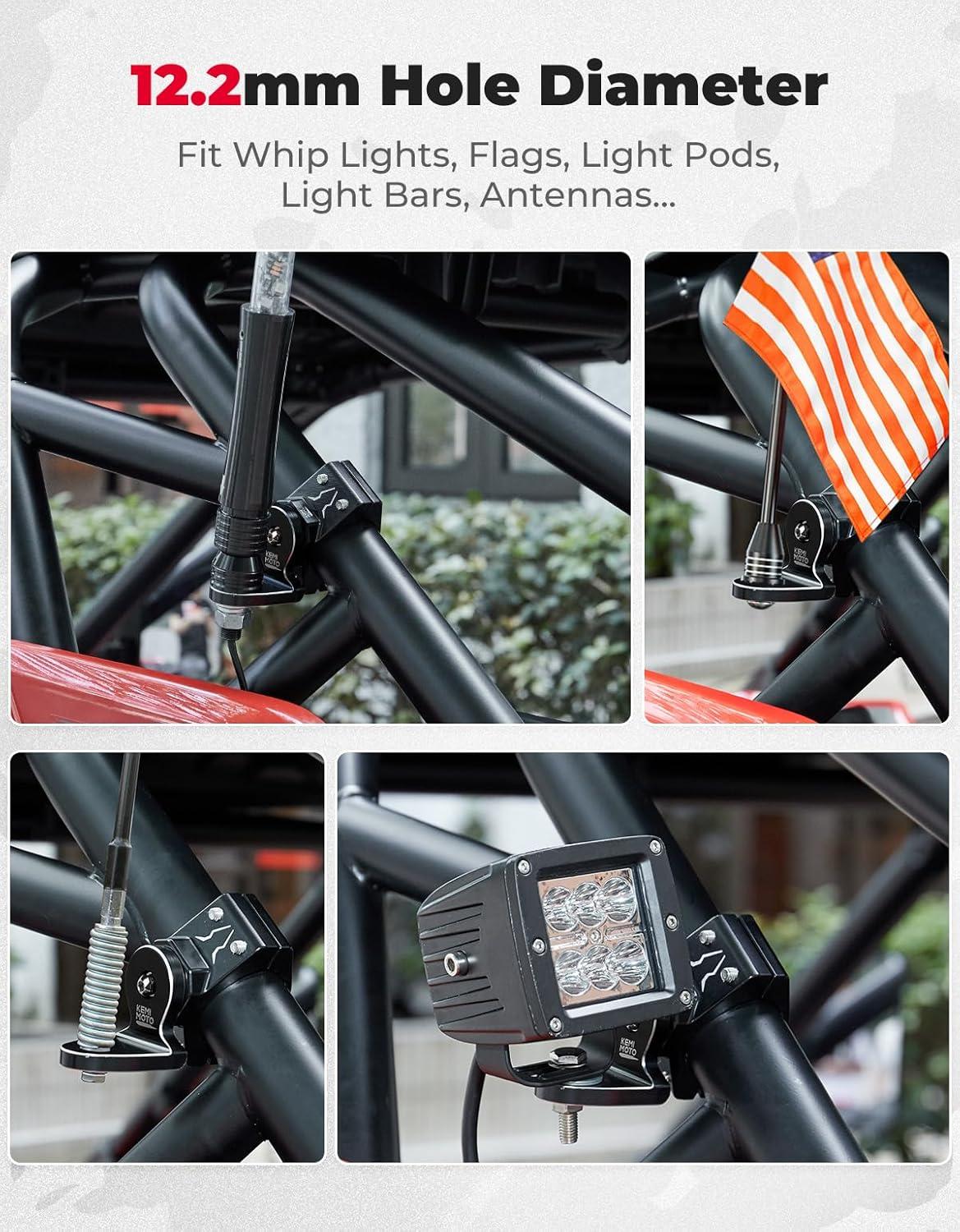 APPLICATION: 12.2mm (0.48inch) hole diameter of KEMIMOTO mounting brackets work great for installing led whip lights, flags, led light bars, led pods, cb antennas on the UTV cage