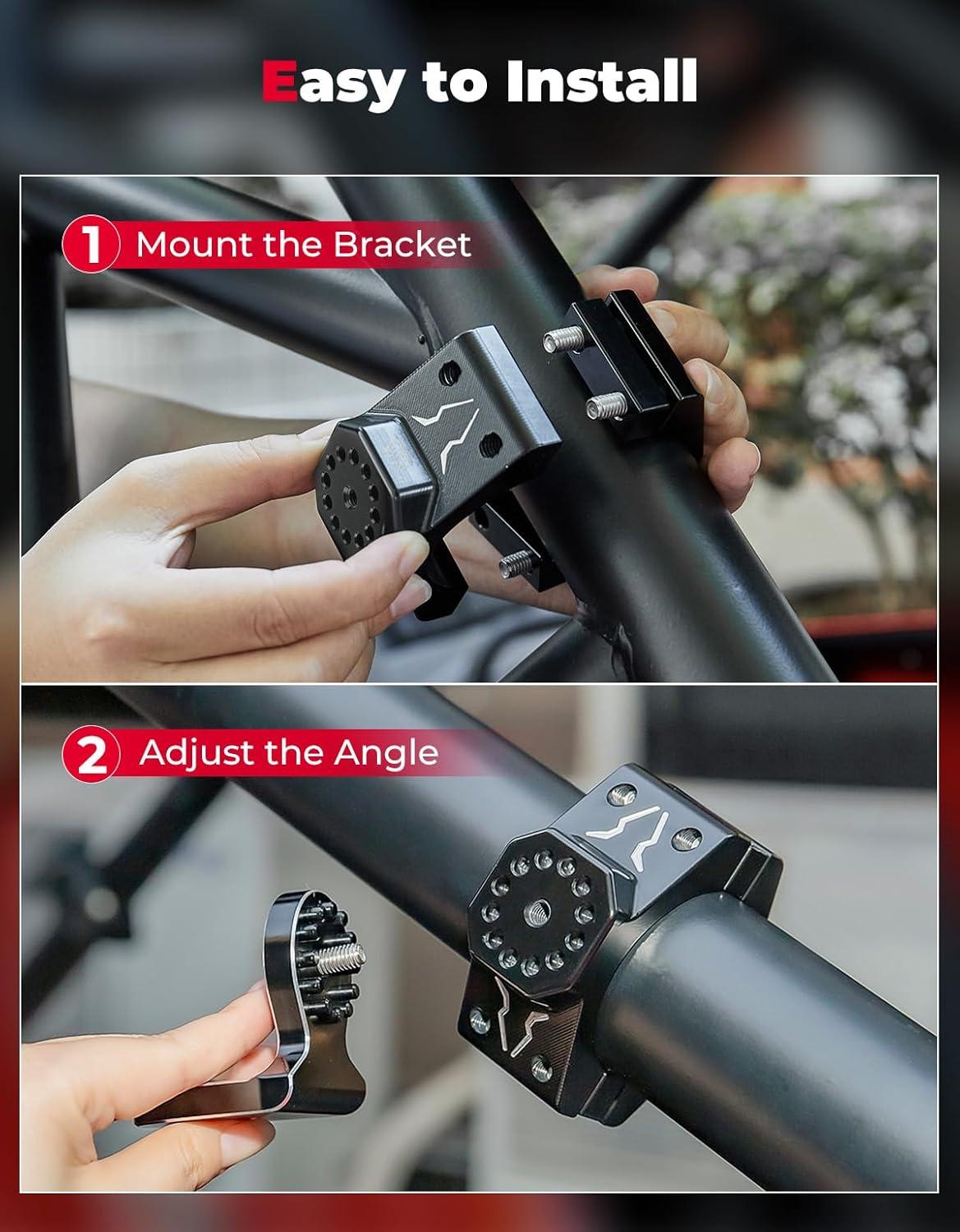 360° ADJUSTABLE: Light bar brackets have 360° rotation adjustability for you to turn them as you like for different purposes. Light bar mounts using 12 pins to lock the mount in and keep them more stable than using a single screw
