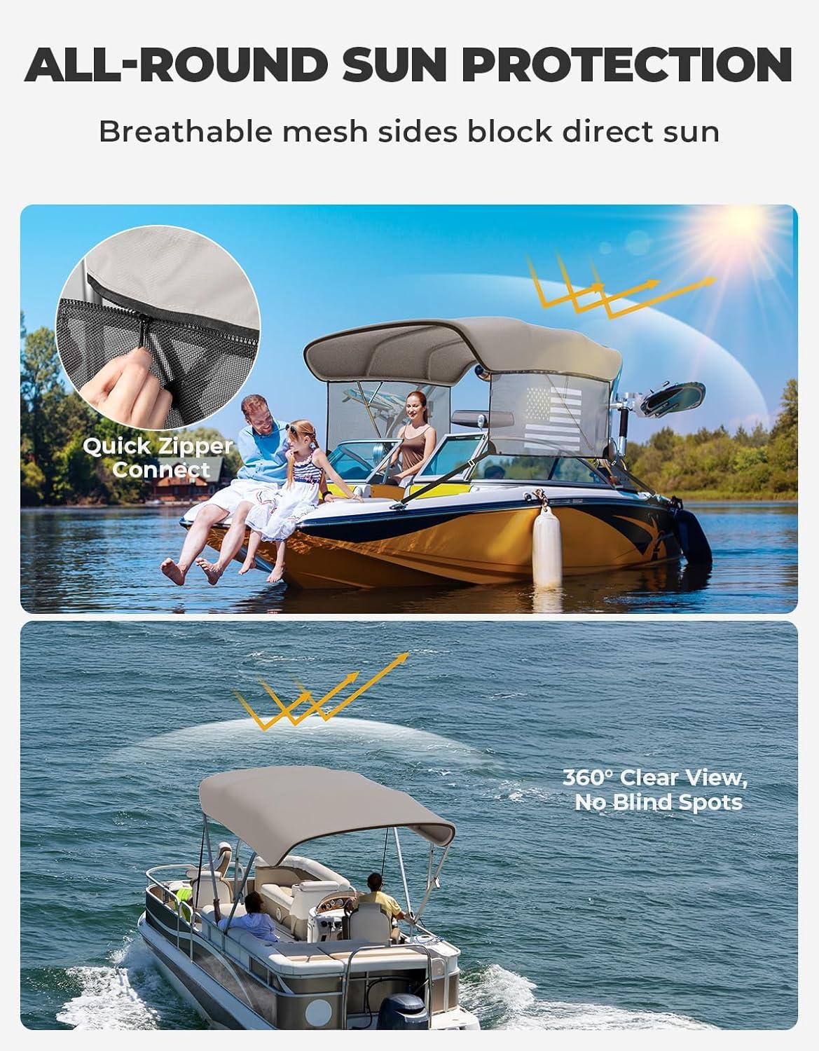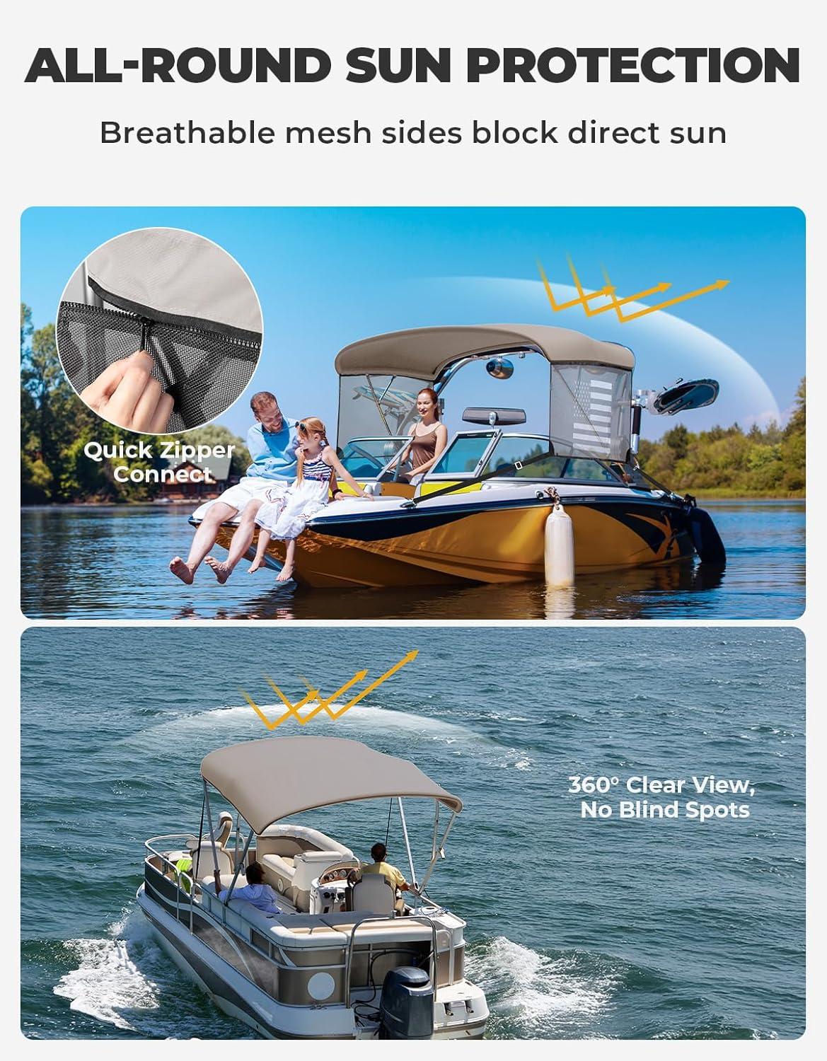 Universal Replacement Cover​​: This boat bimini top is perfectly compatible with round and square tubes (diameter ≤ 1 inch). Its standardized size design can directly replace the existing bimini top cover of the same specification, suitable for the tarpaulin renewal needs of various types of pontoon boats, flat-bottomed fishing boats, etc.