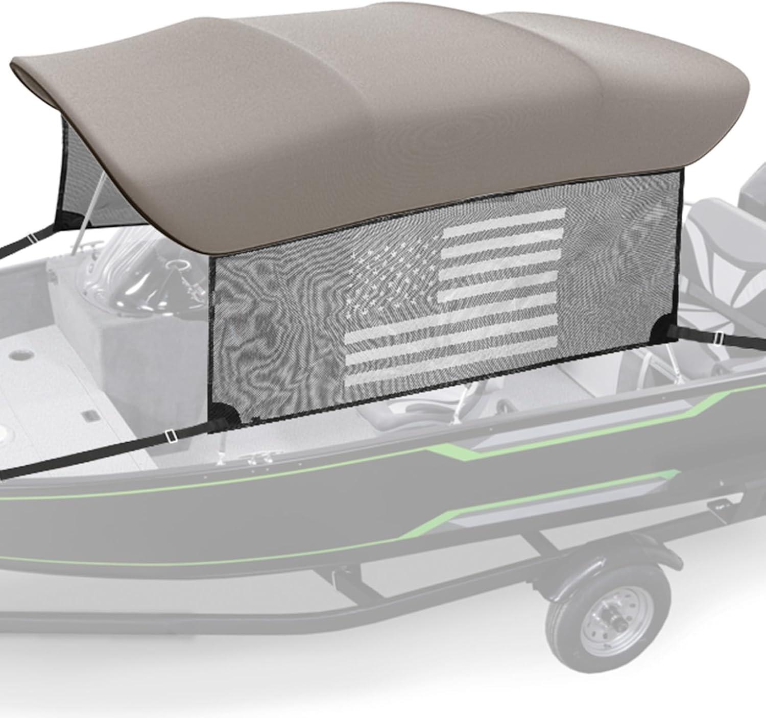 Detachable Mesh Sidewalls: KEMIMOTO's bimini top replacement stands apart from ordinary boat canopy with its patriotic American flag-patterned sidewalls. These premium mesh sidewalls provide sun protection on both sides while maintaining privacy on the boat. The high-quality breathable fabric ensures optimal airflow, and our convenient zipper system lets you quickly remove the Sidewalls when you want an open-air cruising experience.