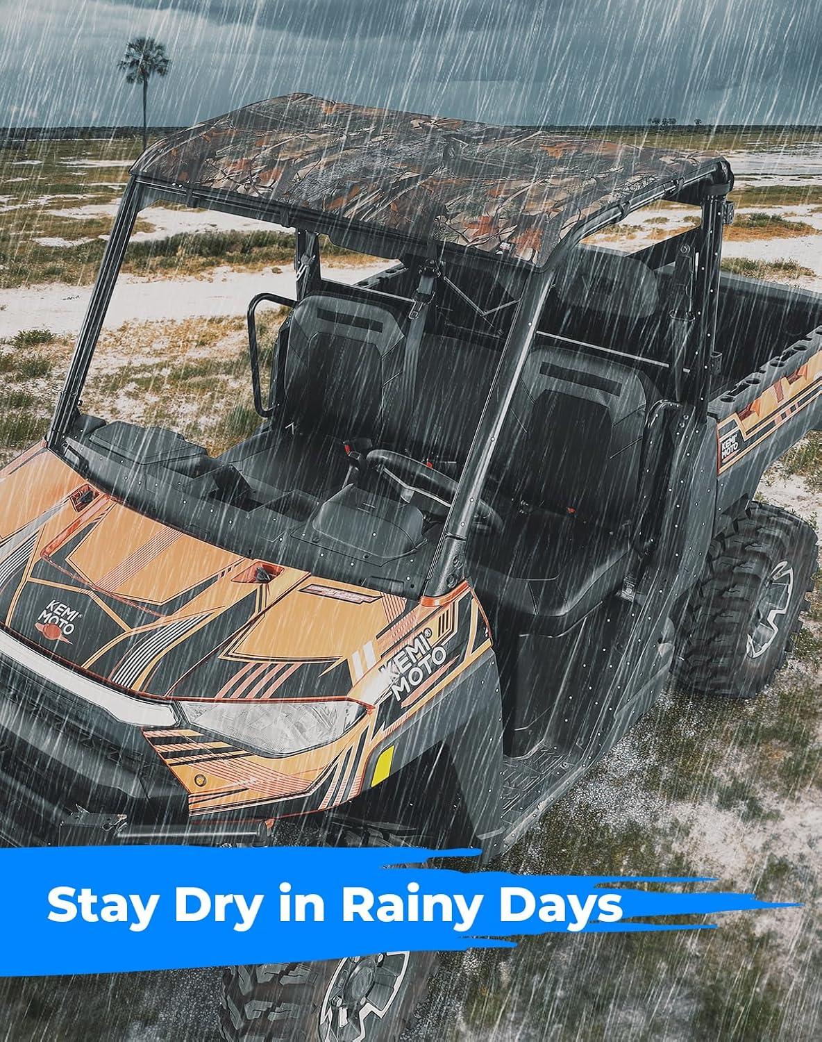 Stay Cool: KEMIMOTO canvas roof prevents direct sunlight exposure, blocking 99.5% of UV rays and 53.7% of infrared rays, helping you and your passengers remain cool during the scorching summer weather