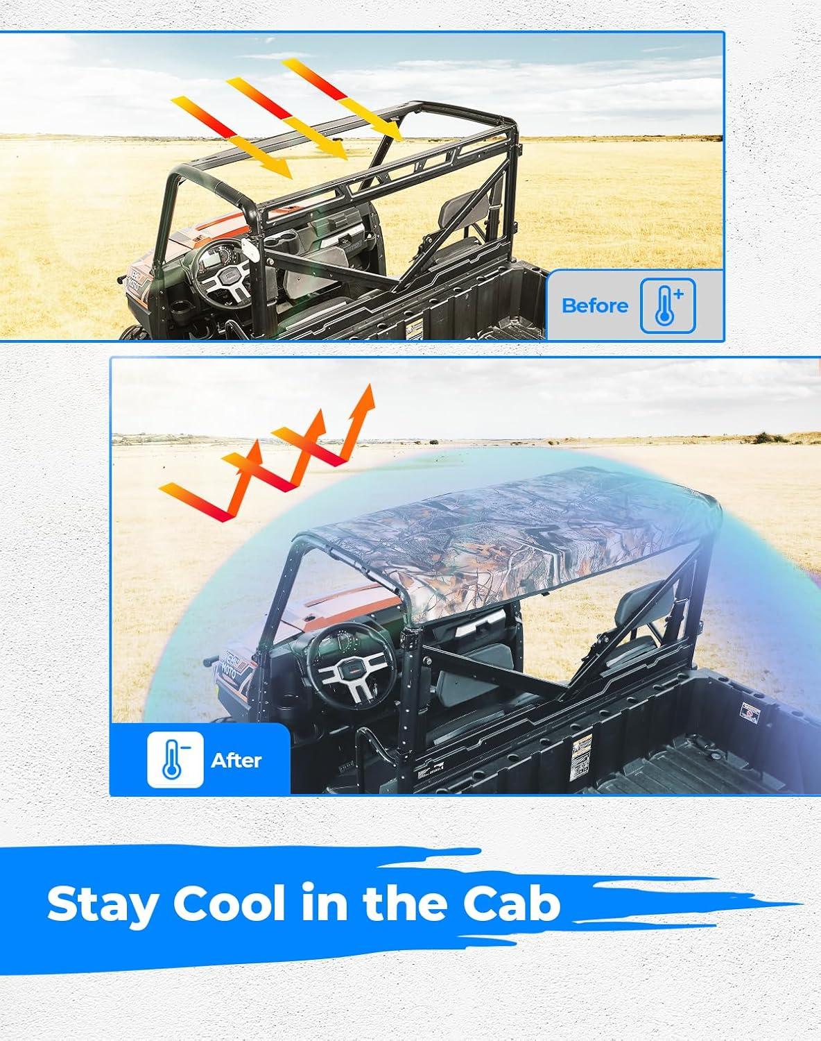 Reliable Protection: With this rooftop, you no longer have to worry about objects falling from above, such as bugs, tree limbs, rocks, and debris. It also helps prevent the accumulation of dirt in your UTV cab