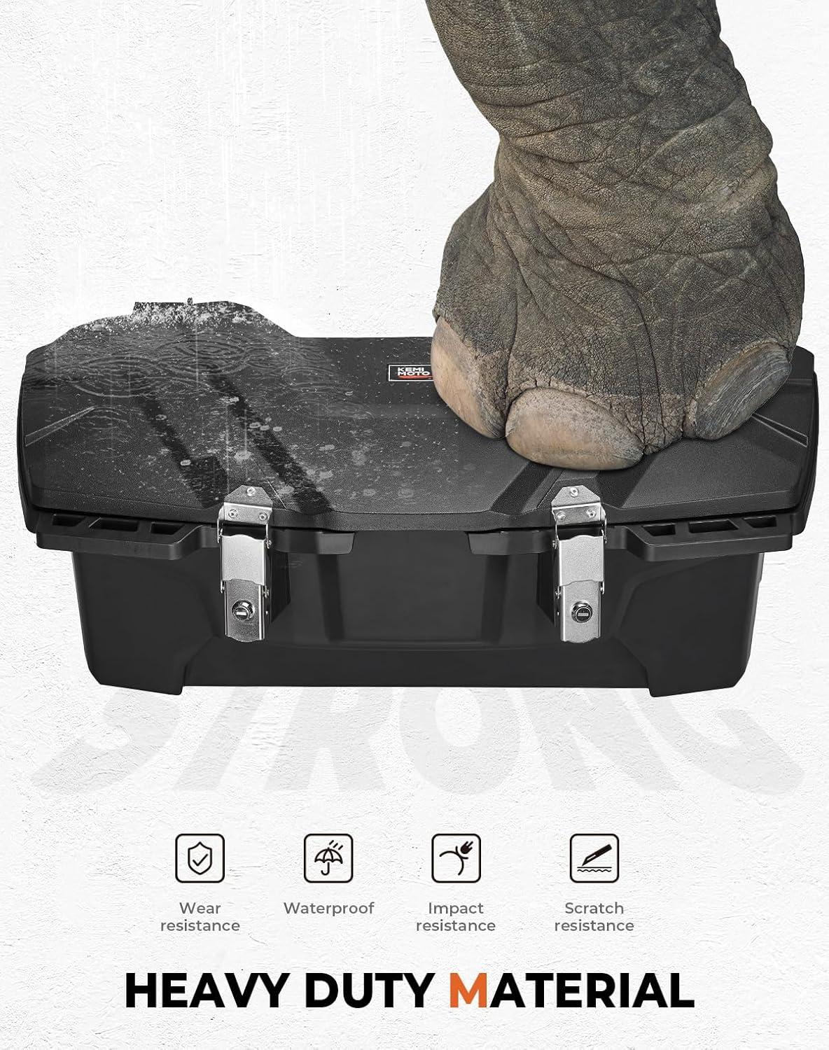 40L Large ATV Storage: The KEMIMOTO ATV storage box has a large storage capacity of about 40L, making it easy to store variety of items such as gloves, helmets, hammers, etc., ensuring that your belongings are well-organized and safe inside the ATV cargo box