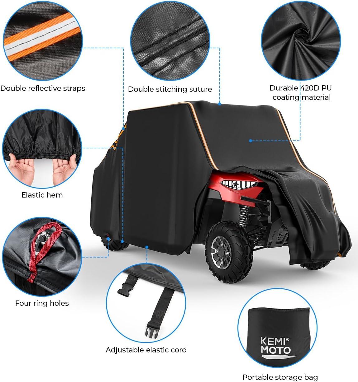 Waterproof & Anti-UV Fabric: Made of 420D oxford, polyester cloth, and PU coating for long performance. KEMIMOTO cover provides excellent protection against snow, rain, dirt, dust, and sun UV rays