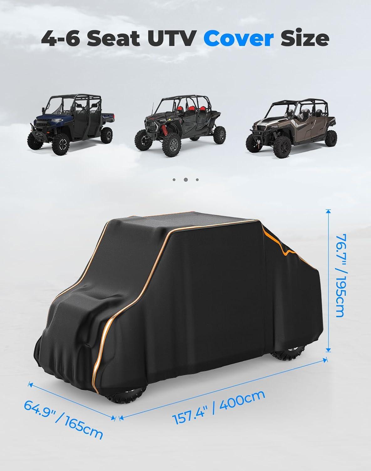 FITMENT: KEMIMOTO cover 4 seats is compatible with Polaris Ranger Crew RZR Turbo XP 4 General 4 1000 defender max cfmoto uforce 1000 xl, Uforce U10 Pro XL 2025, zforce 950, Talon 1000X-4 Pioneer 700-4 Teryx hs 700 crew msu 850-5 and Mule PRO FXT Wolverine X4. (Fit all 4-6 seats UTVs)