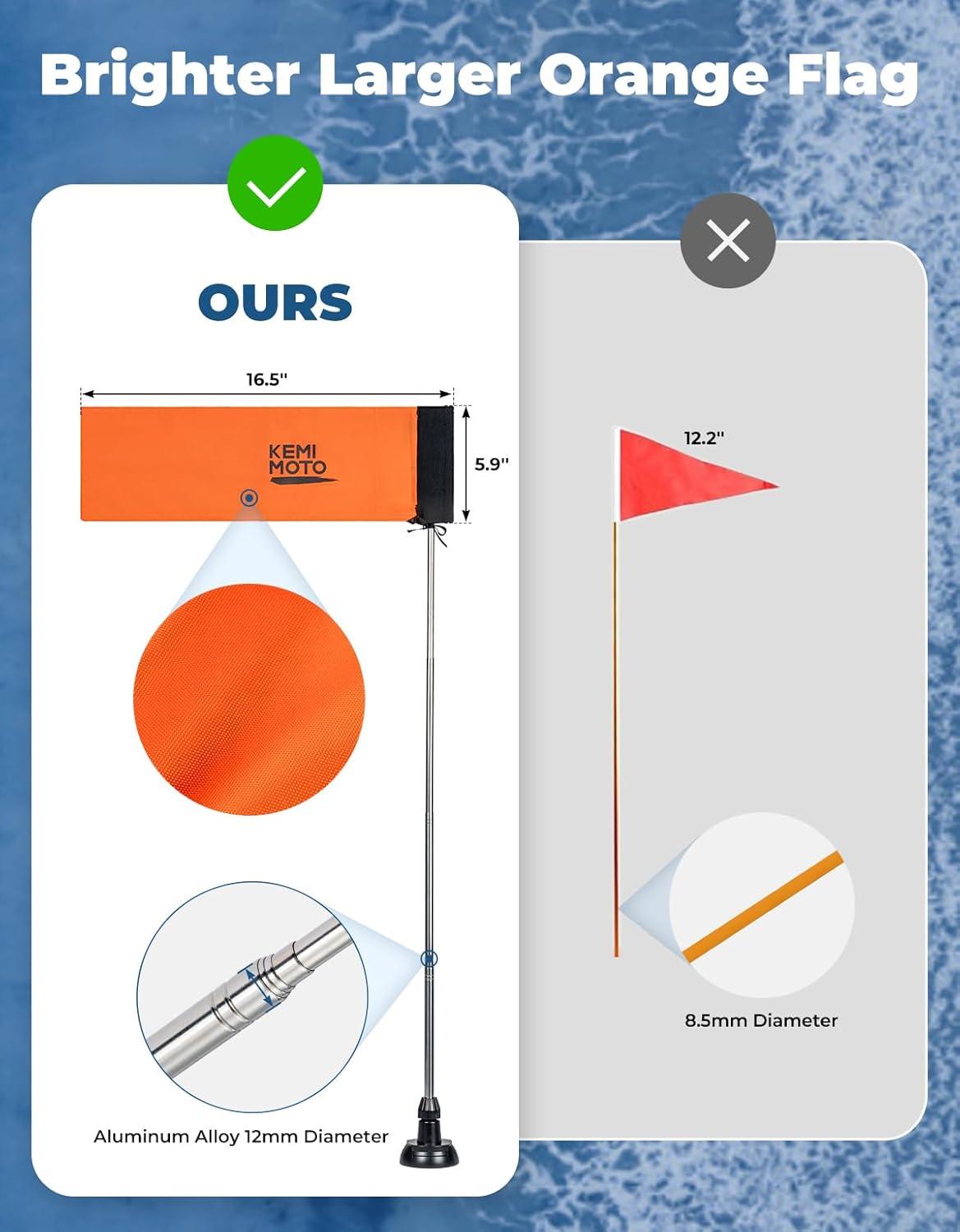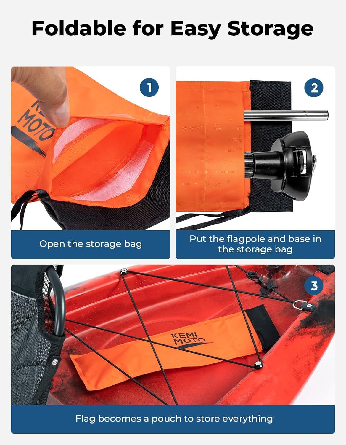 【Lawful Orange Boat Flag】KEMIMOTO flag for boat meets safety requirements, Even in states with no specific flag requirements, we highly recommend using our kayak safety kit for increased visibility. Adhering to safety regulations while enjoying your kayaking experience!