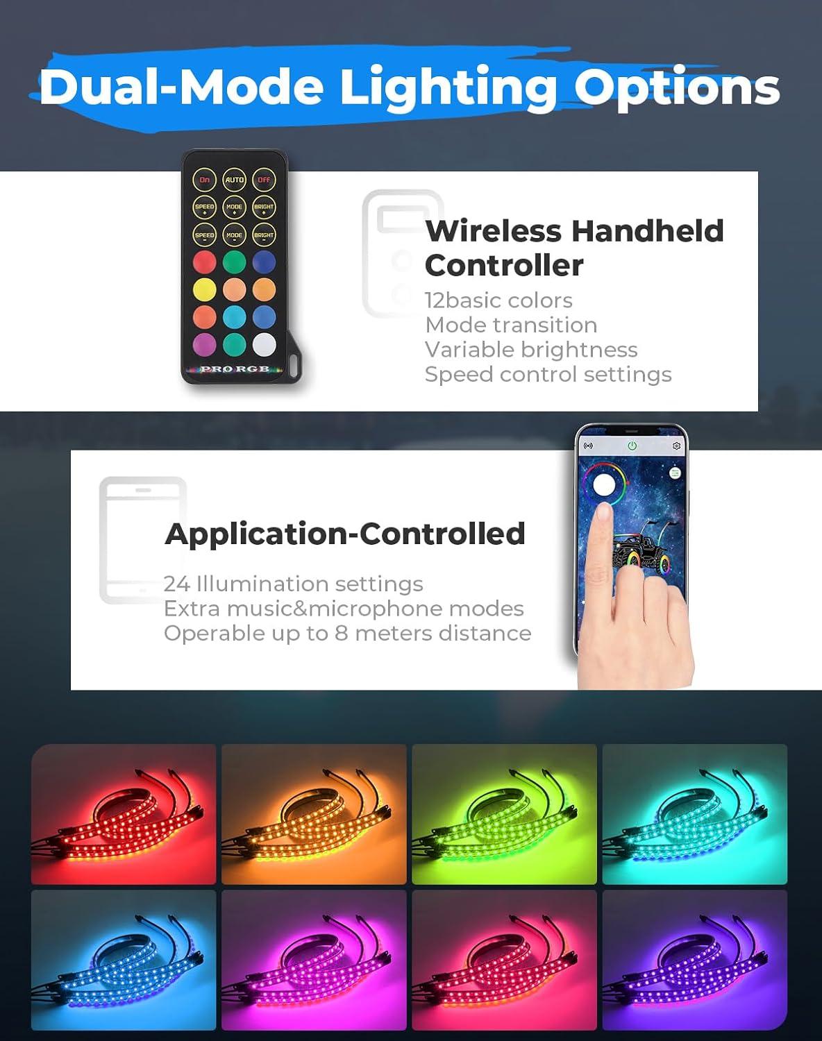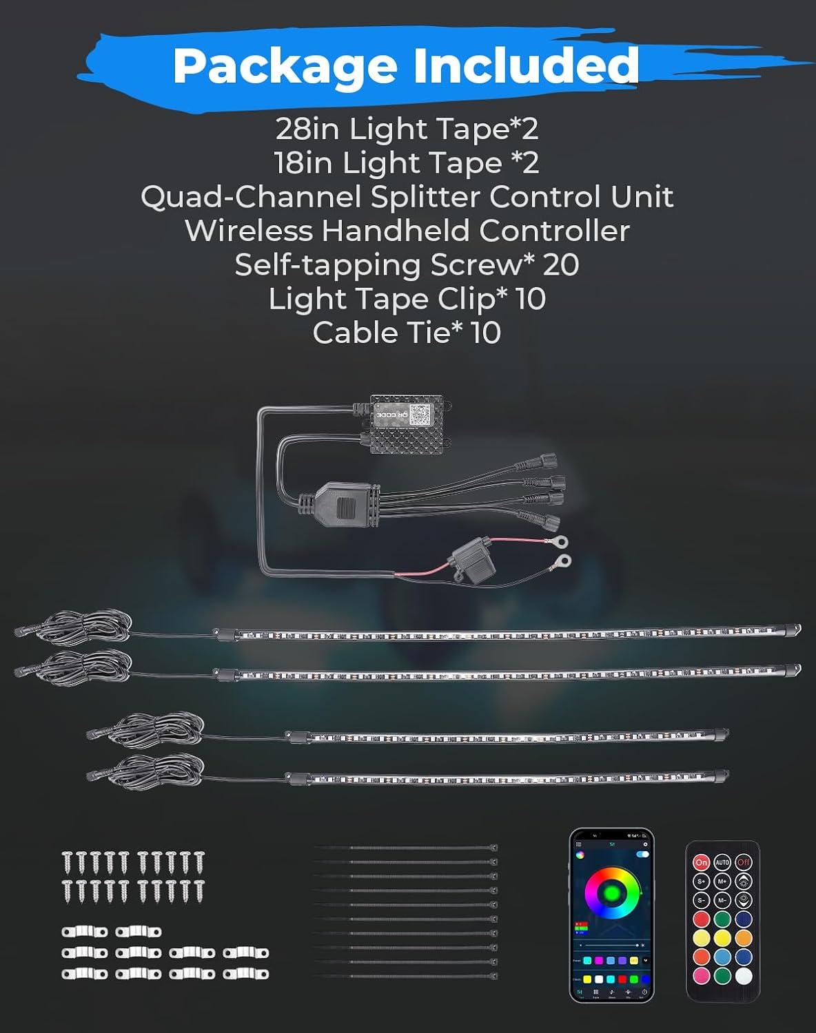 APP & Remote Quick Control: This golf cart LED strip light kit supports remote and APP control, allowing you to easily customize your lighting experience to match your mood or activity
