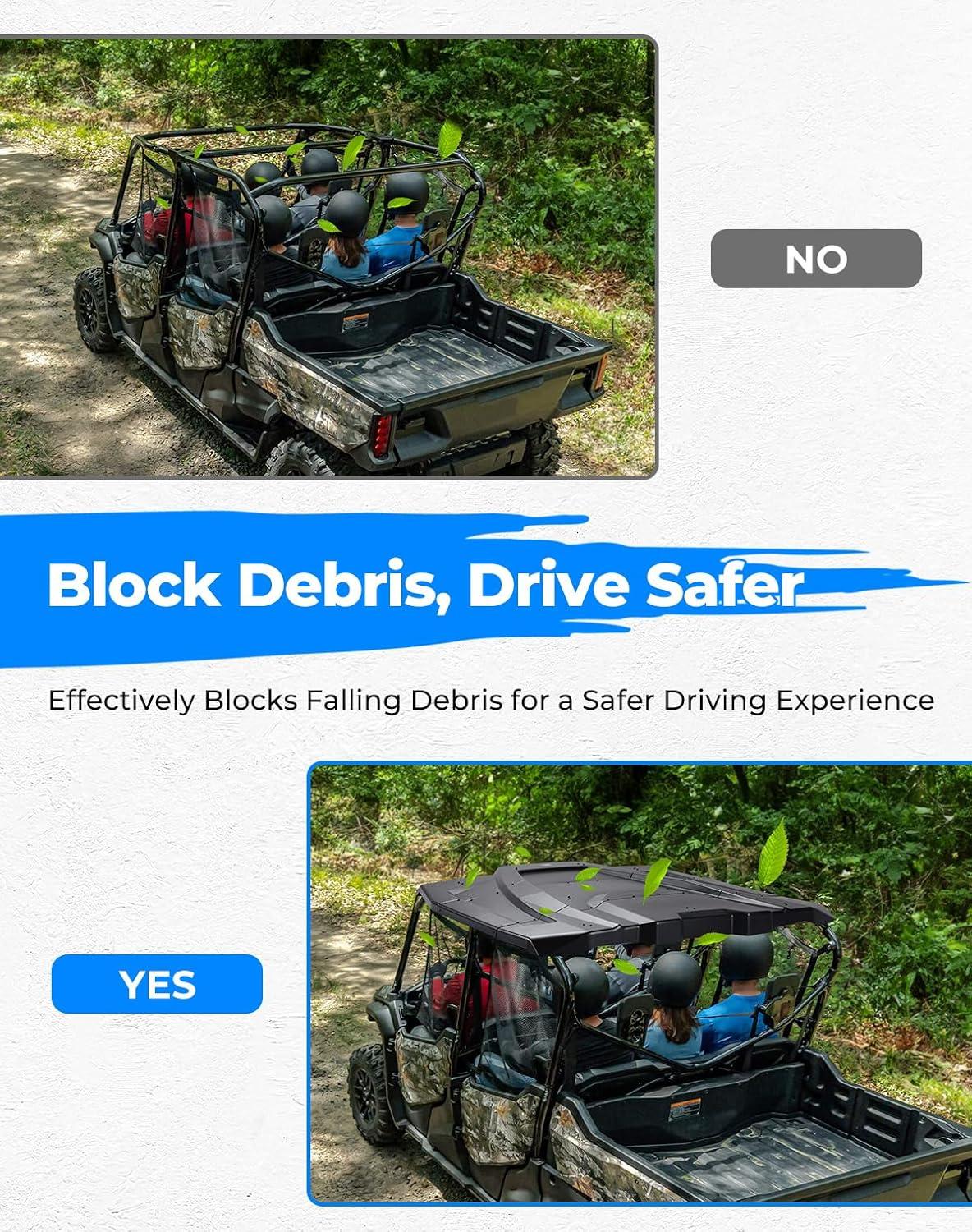 Keep Comfortable: The lightweight UTV hard roof offers effective protection by blocking rain, dust, rocks, and other debris, keeping your cab's interior dry and clean