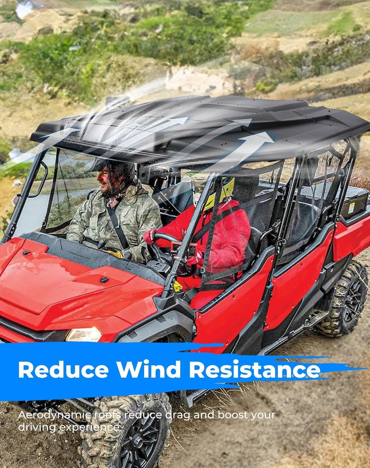 Reduce Air Resistance: The plastic roof top with shock-absorbing foam has an aerodynamic design that reduces air resistance and noise, making your off-road adventures more enjoyable