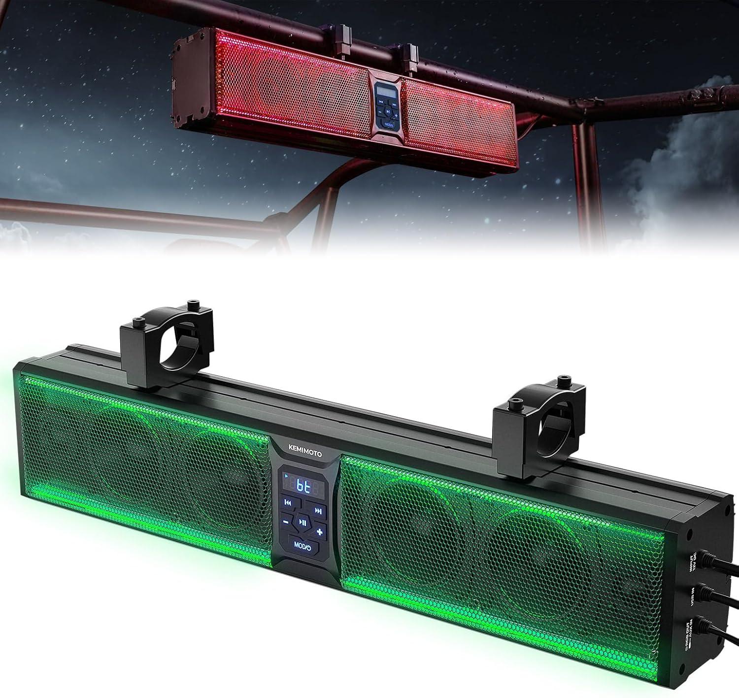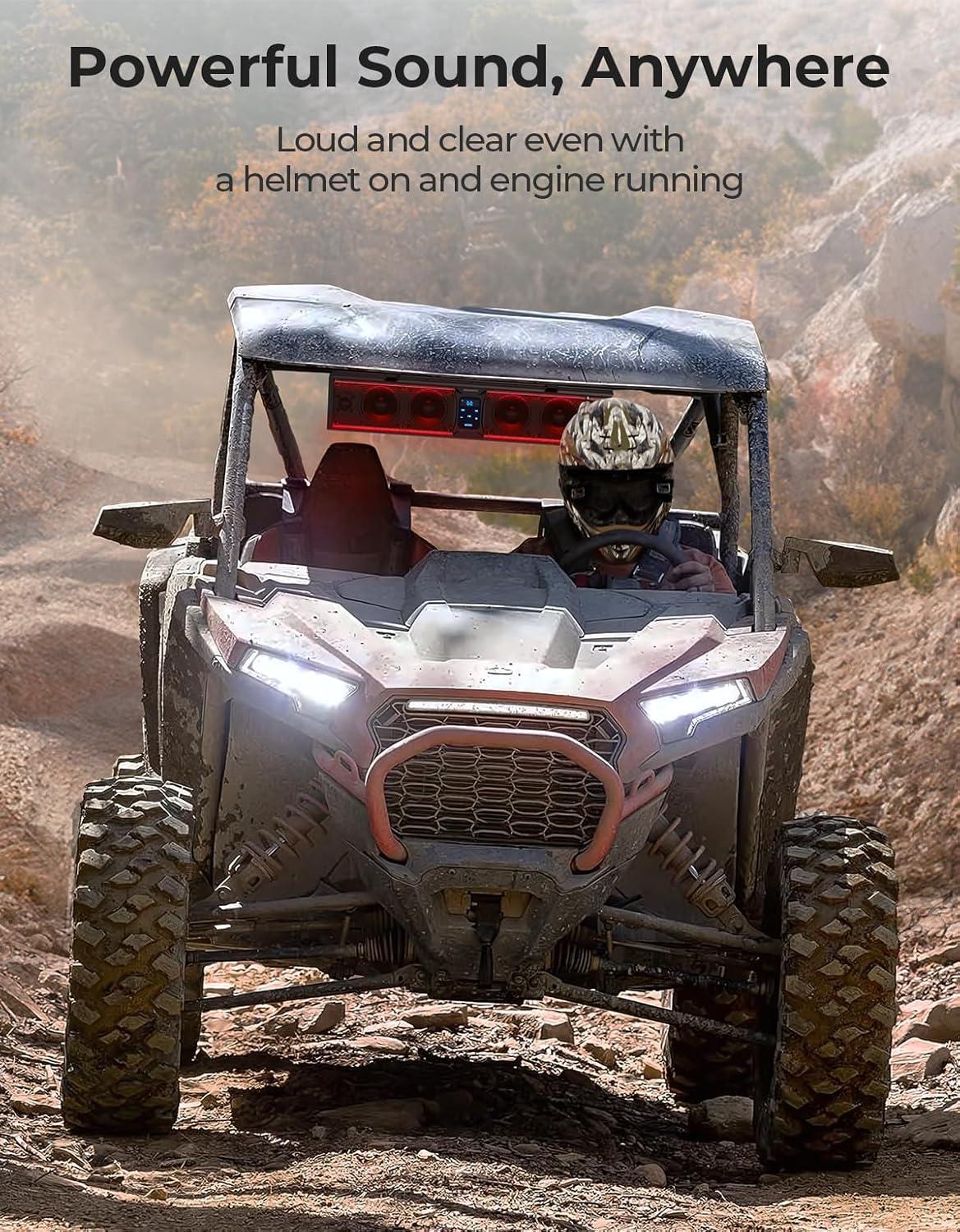 IP65 Waterproof: The outdoor sxs sound bar is engineered to withstand various weather conditions such as sand, dirt, snow, or rain. Its Aluminum Alloy Structure and hardware are all weather-resistant and meet the IP65 International standards level. With this technology, you can enjoy your favorite tunes in any environment without any worries
