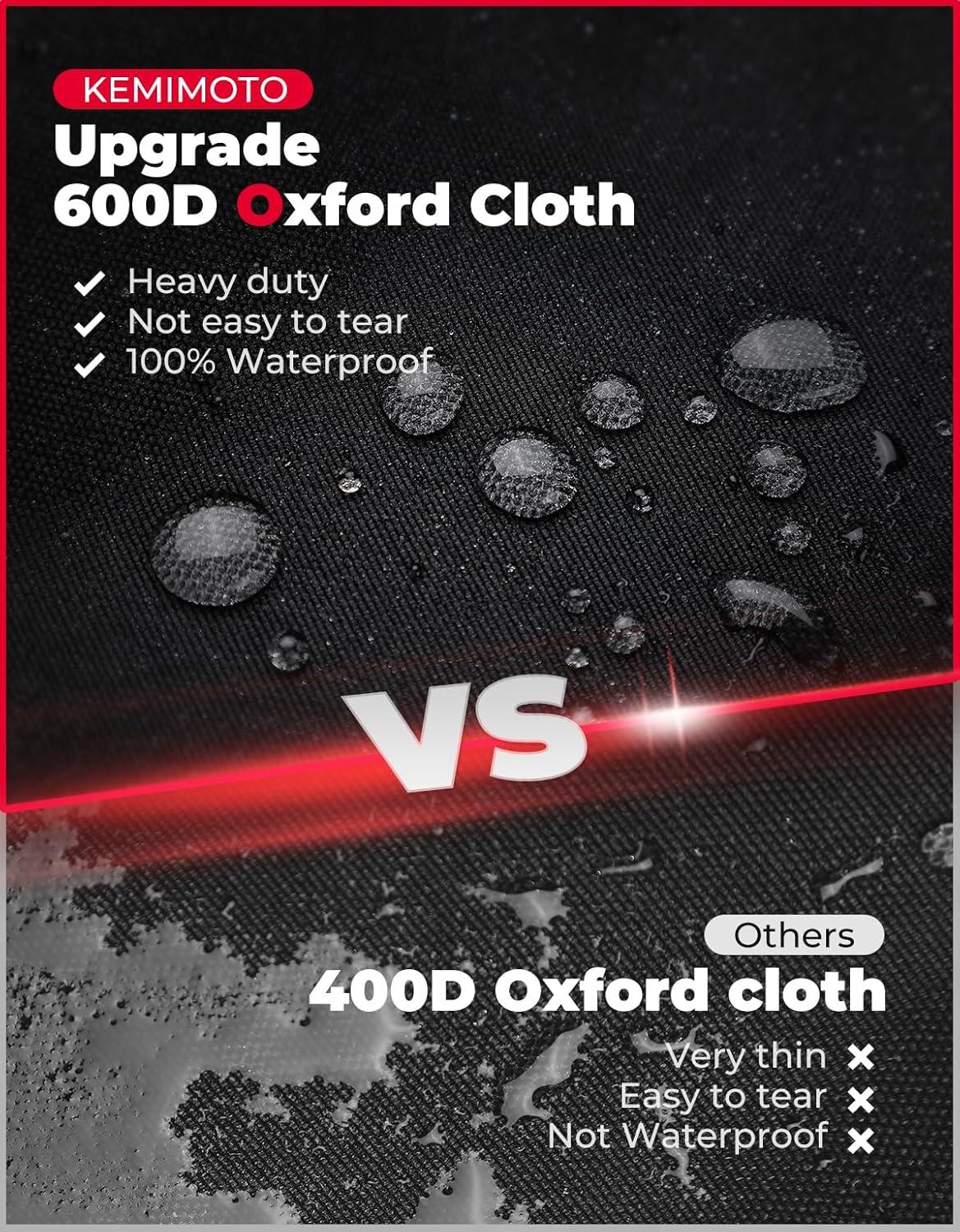 600D Waterproof Fabric: Adopts upgraded 600D waterproof Oxford cloth, which is sturdy and durable, and can resist the impact of severe weather such as strong winds, heavy rain, and strong sunlight. 4-sided PVC window design can maintain a clear view during driving
