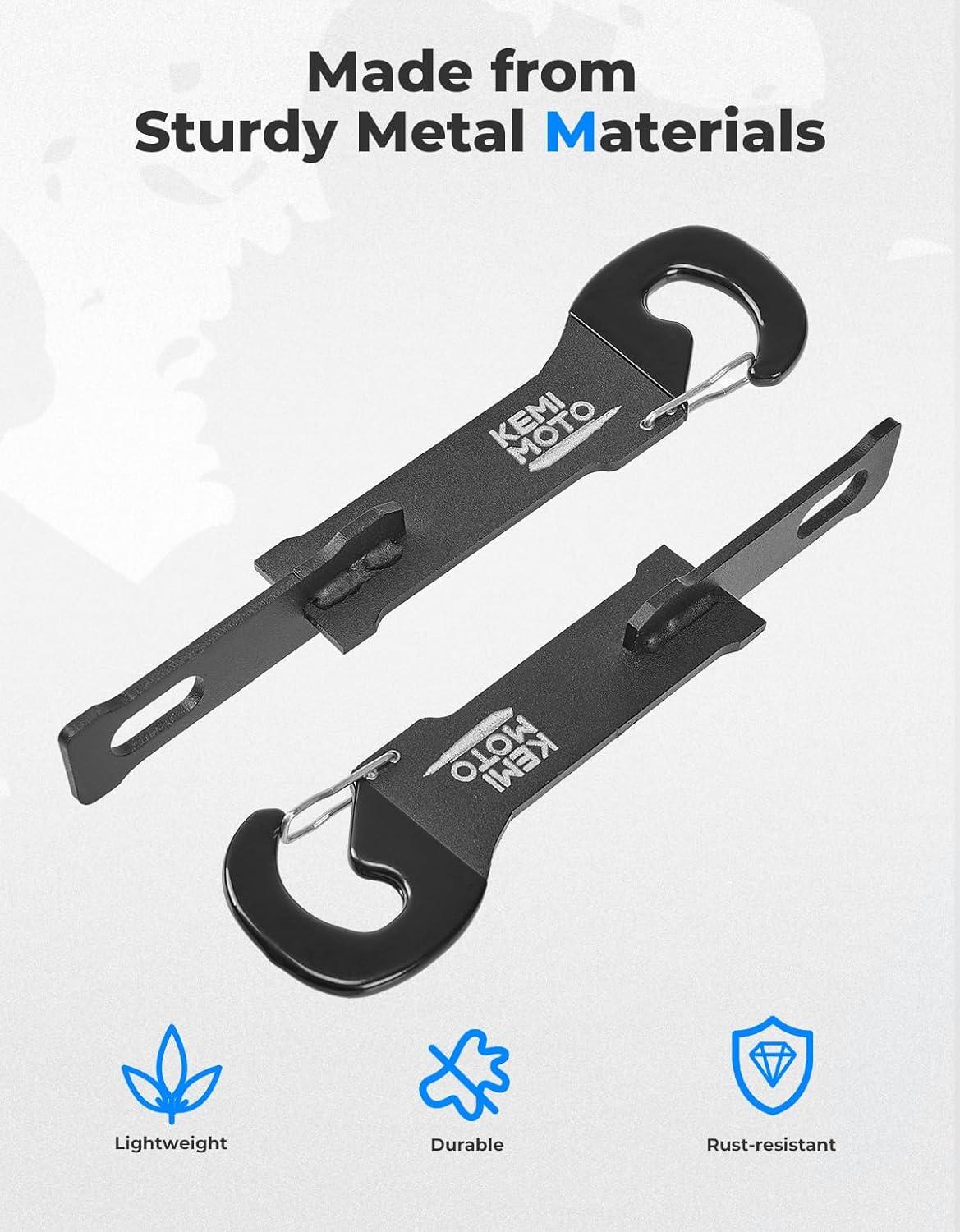 EasDurable and Reliable Construction: Made from strong metal materials, these latches are designed to withstand deformation and breaking. The surface is painted to prevent rust.y and Fast Installation: Installation is straightforward; in just seconds, attach the UTV Door Latches to the cabin. Snap the latch holes into the door latches—no tools needed for quick setup