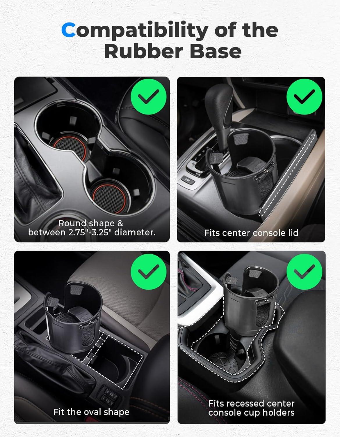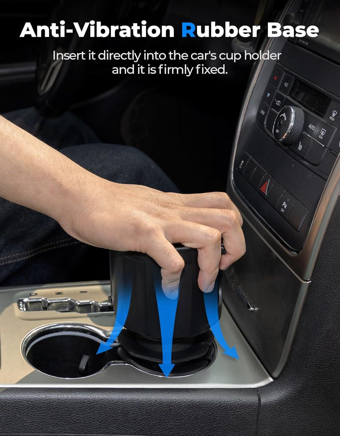 Effortless Installation: Simply insert the rubber base of the cup adapter extender directly into your vehicle's existing cup adapter. It's robust and reliable, ensuring your drink is always within arm's reach. Experience convenience with every sip