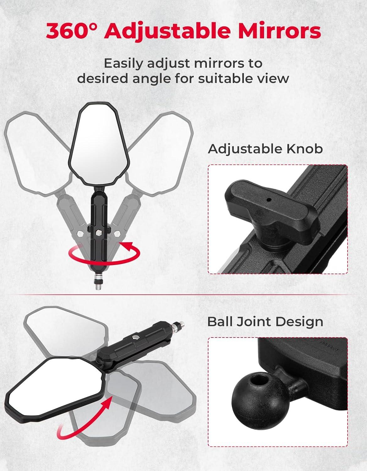 Full Range Adjustability: Our 360-degree rotatable mirrors with collapsible stems guarantee no more blind spots. Adjust to your perfect viewing angle and keep a stable view, no matter the riding conditions