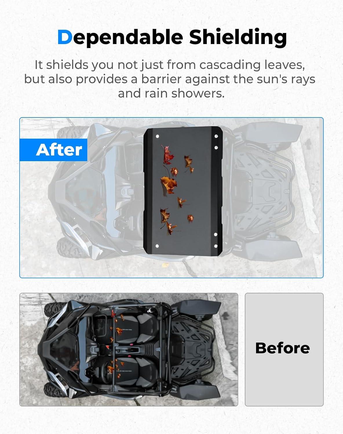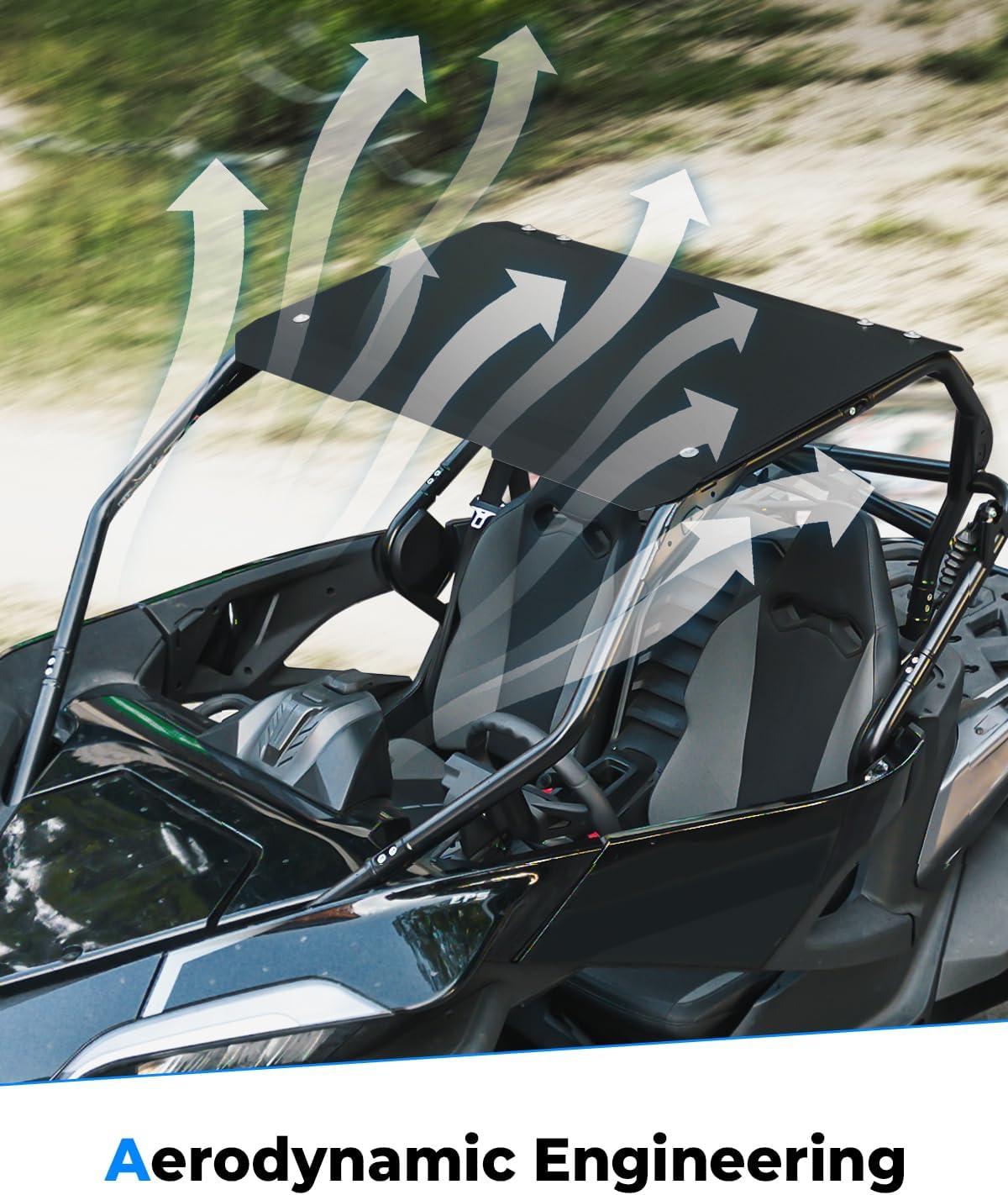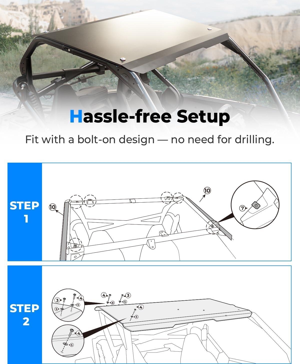 Durable Aluminum Roof: Sporting a black powder coat finish, this sturdy yet lightweight roof won’t weigh down your UTV, offering both style and function