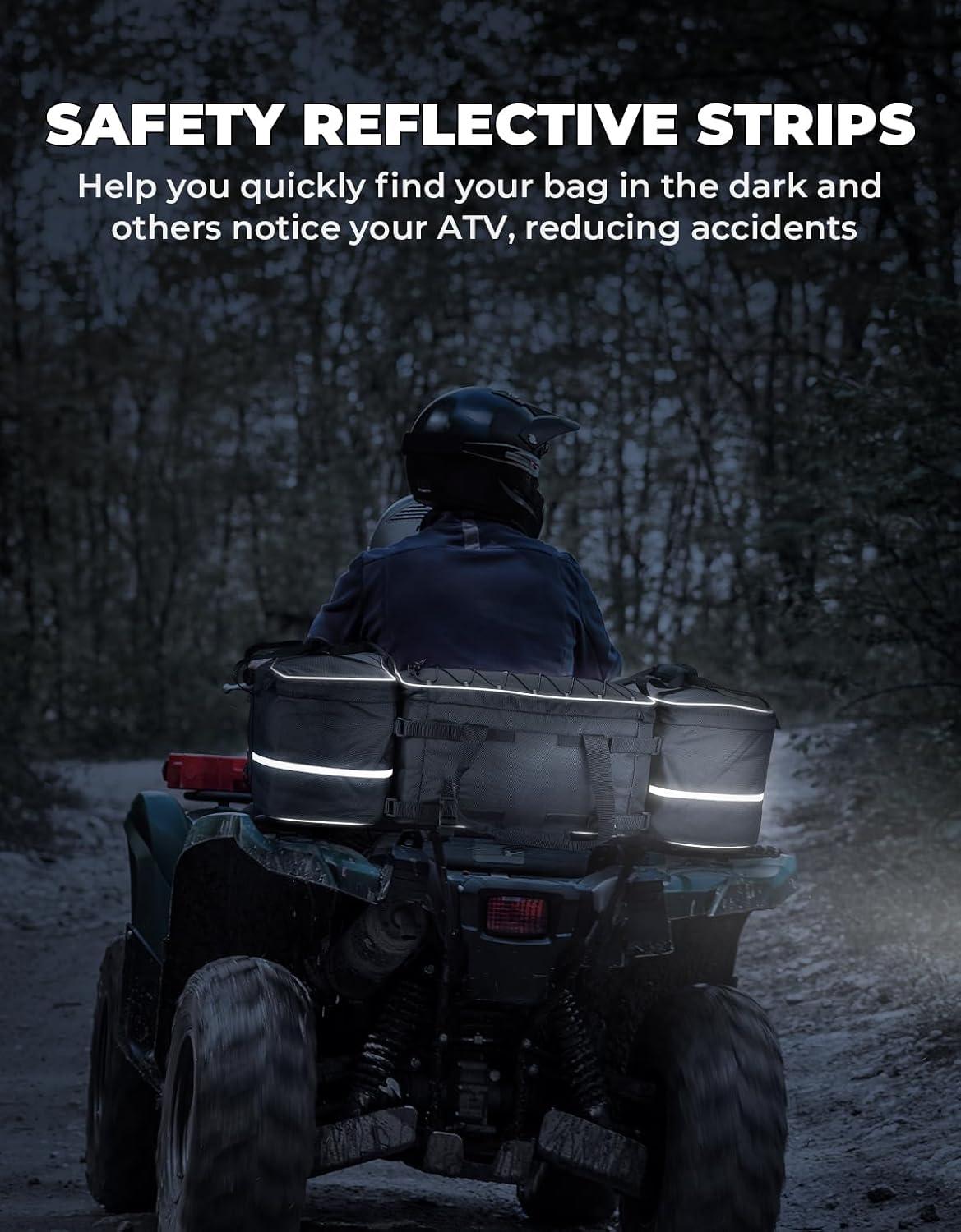 Driving Safer at Night: KEMIMOTO ATV rear bag with reflective strips design better helps others notice the object in poor light conditions, reducing accidents and improving safety