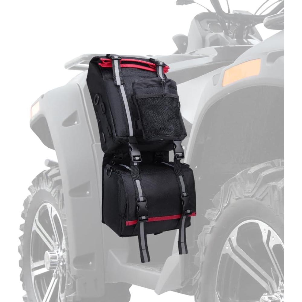 Easy Installation: No need to use any tools. Two quick release straps on the upper and lower ends of the bag can tie it to the shelf of the ATV, using self fastening straps on the back of bags can make the bags fixed ATV firmly. These ATV fender bags are universally compatible with Sportsman Scrambler Grizzly Kodiak Kingquad; compatible with Fourtrax Foreman Rancher Recon Rincon Outlander Renegade, etc