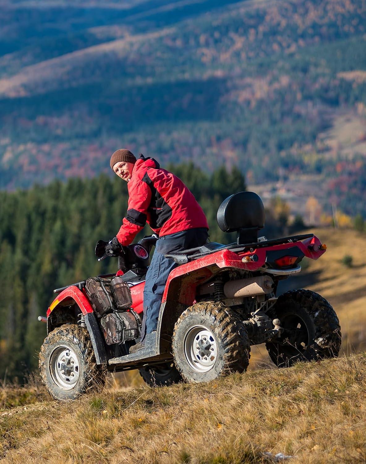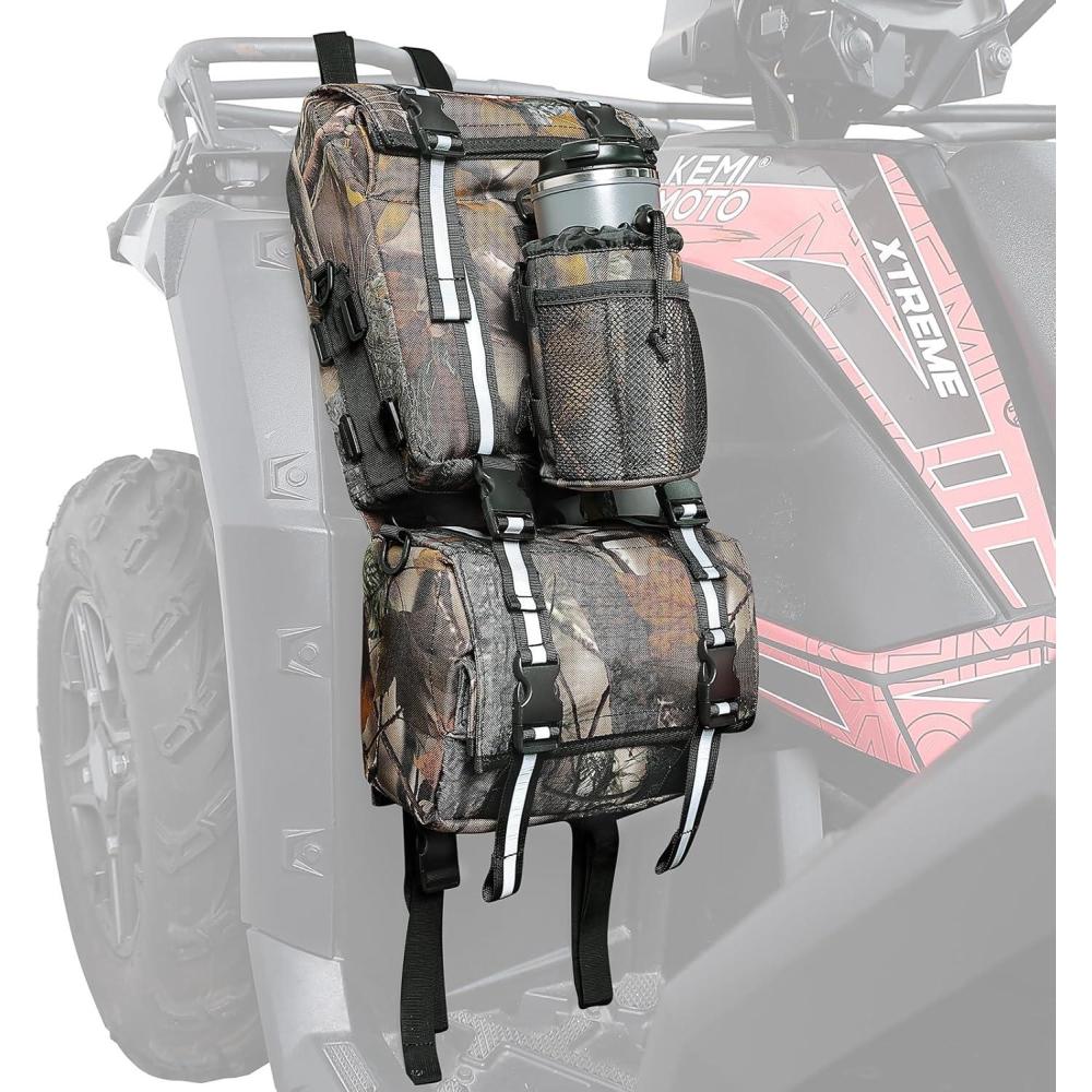 Easy Installation: No need to use any tools. Two quick release straps on the upper and lower ends of the bag can tie it to the shelf of the ATV, using self fastening straps on the back of bags can make the bags fixed ATV firmly. These ATV fender bags are universally compatible with Sportsman Scrambler Grizzly Kodiak Kingquad; compatible with Fourtrax Foreman Rancher Recon Rincon Outlander Renegade, etc