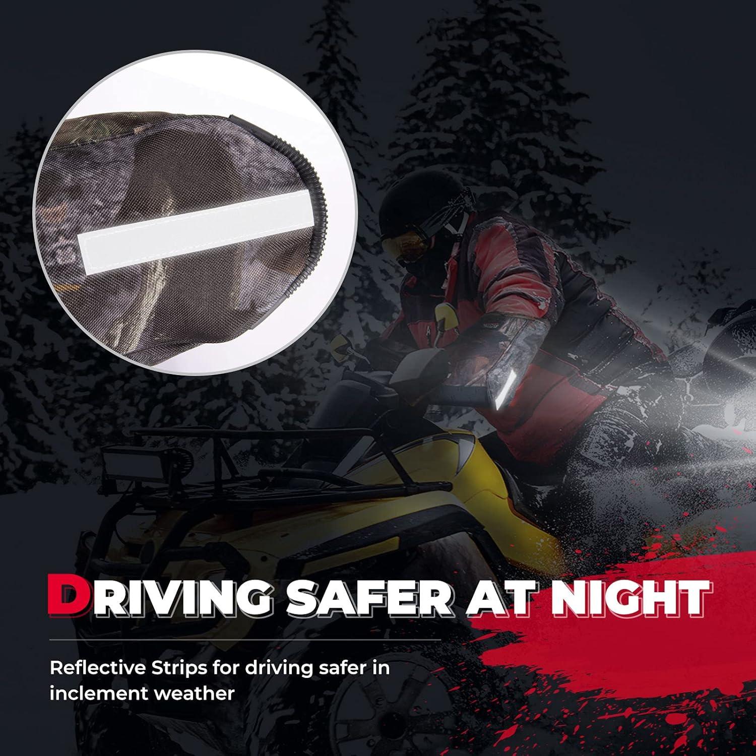 Safety Escort at Night: Snowmobile handlebar mitts ATV hand mittens for motorcycle gloves designed with reflective strips for driving safer in inclement weather, they can help others notice the objects in poor light conditions when illuminated by a light source, and protect your ATV from scratches, for example people pass by it