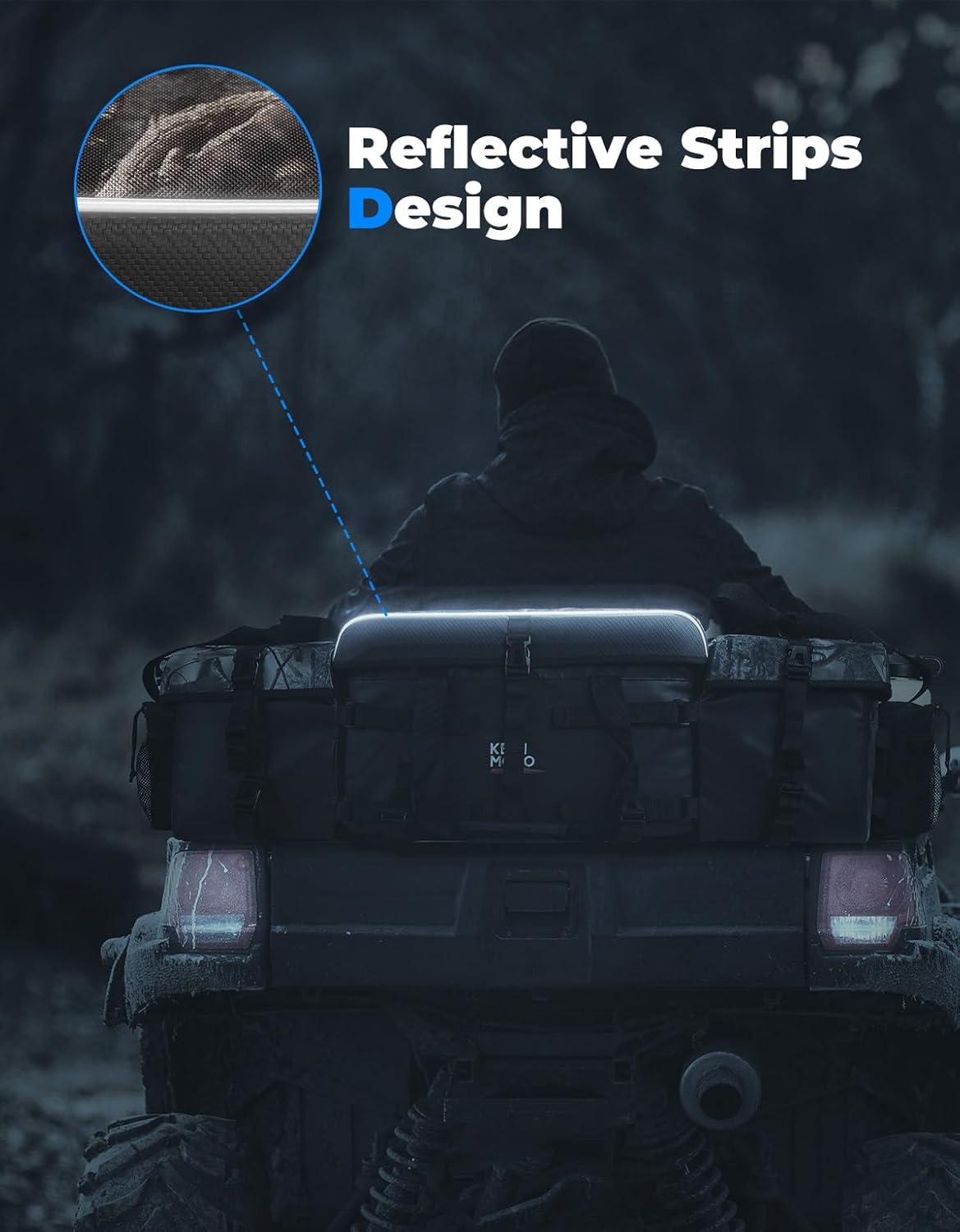 Access to Items Quickly: The ATV rear storage bag zipper-free flap structure allows you to quickly open the lid and take out items from the bag by loosening the buckle, without having to worry about damaged zippers. Reflective strip design helps others notice the object in poor light conditions, reducing accidents and improving safety