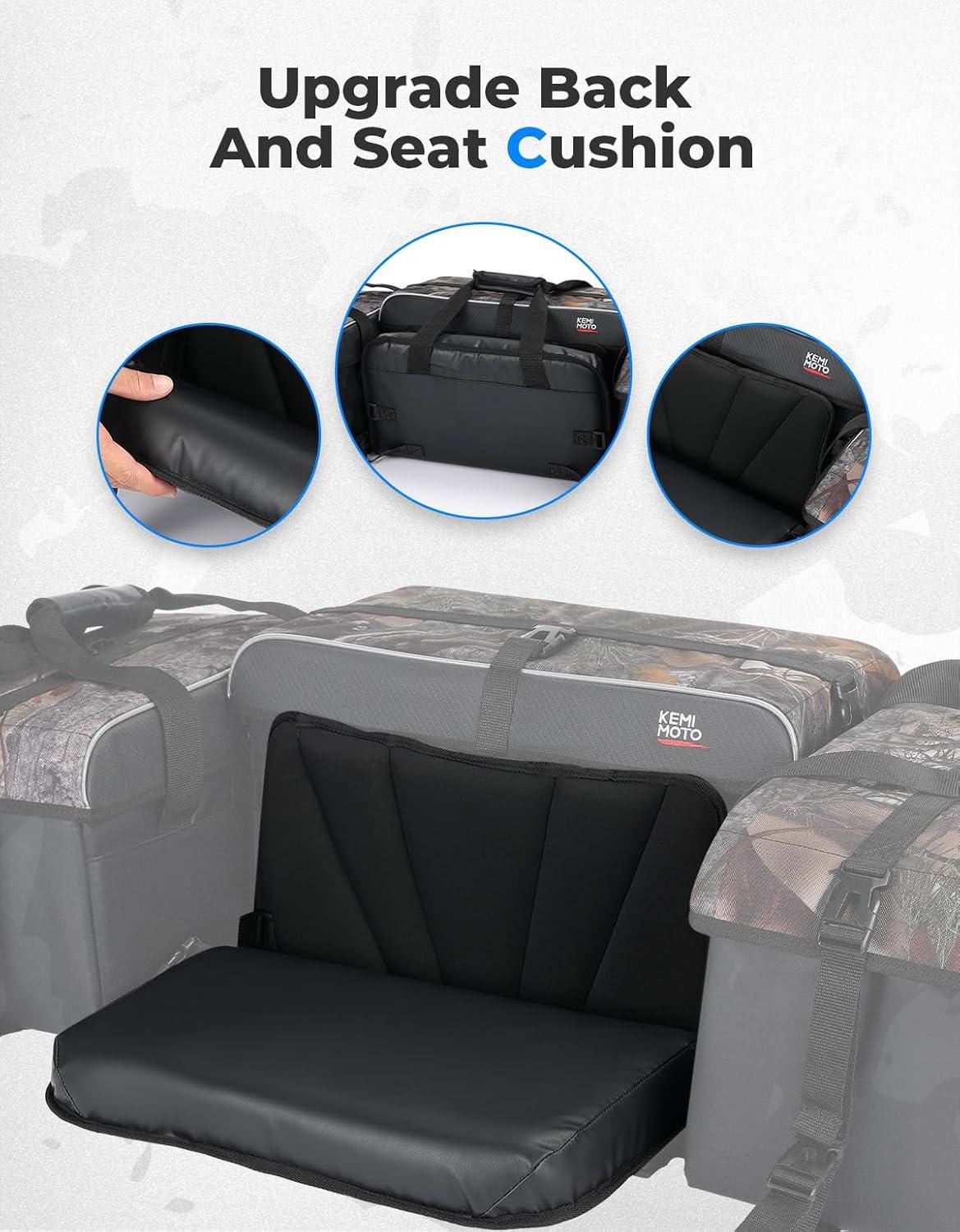 Comfortable and Stable: The four-wheeler gear bag with a soft and breathable cushion and backrest can offer a secure and comfortable seat for you. And you can pack it up in the bag by using self-fastening straps as needed. This ATV bag is universally compatible with Sportsman Rancher Foreman Scrambler Kodiak Grizzly CFMOTO and so on