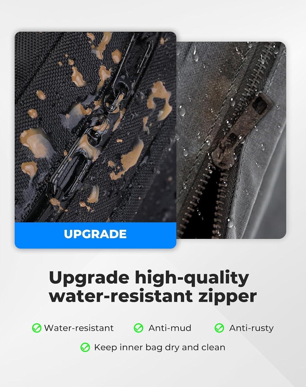 Water-resistant Design: KEMIMOTO ATV saddle bag is used with water-resistant and wear-resistant fabric helping no one drop of mud, water or dust get into it and keep your supplies as clean and dry as when you put them in. Moreover, with an upgraded water-resistant zipper, no need to be afraid of any dust, mud, dirt, or sand settling on the zippers to make them impossible to open and close. Please avoid prolonged exposure to heavy rain or car washes