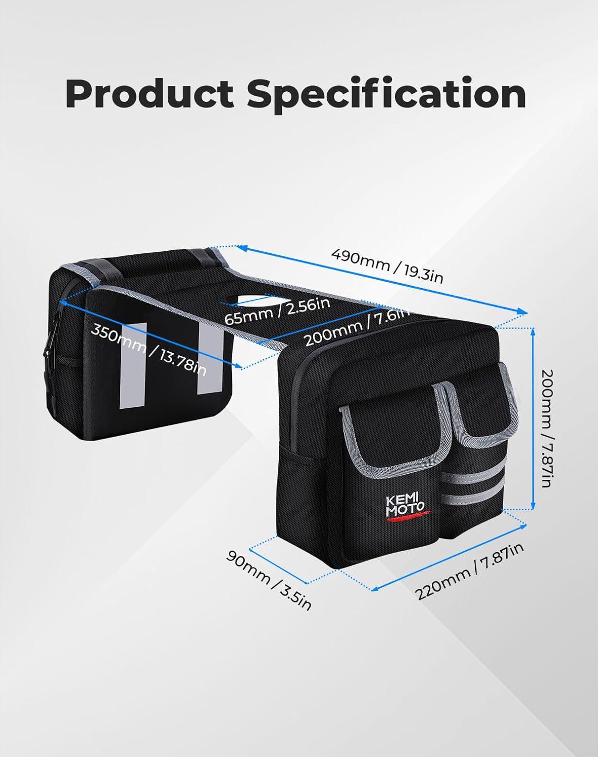 More Storage Space: KEMIMOTO four-wheeler saddle bag with two internal pockets can store your tools, phone, keys, and so on. Three external pockets can hold your water bottles or tools conveniently. Diameter less than2.16 Inch