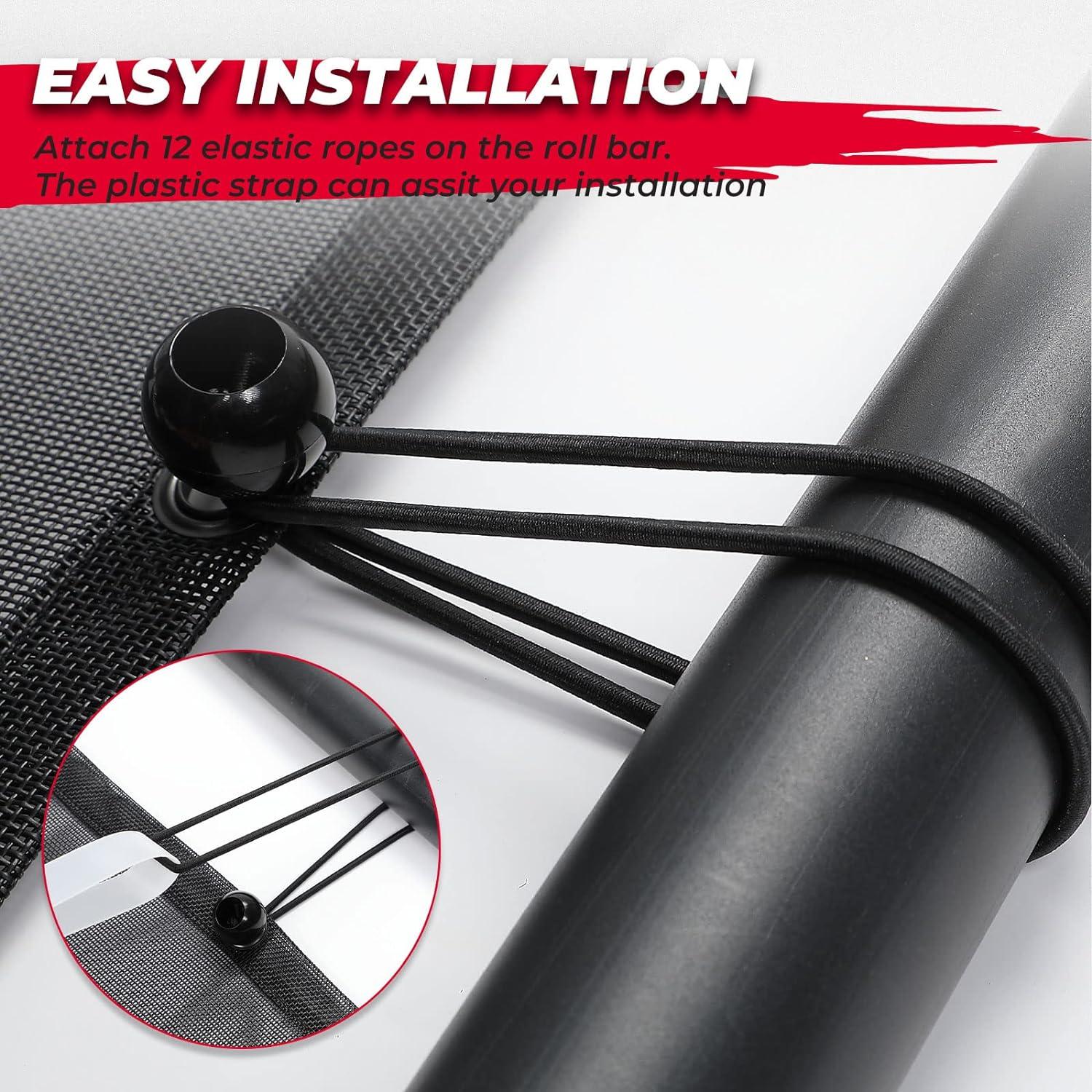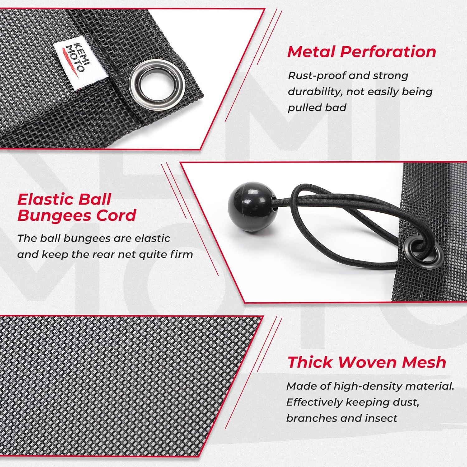 Easy Installation: Kemimoto mesh is easy to install. Attach the Ball Head Elastic Ropes to the roll bar, no tool is needed. Different lengths of ropes are provided to install on different positions to ensure firmly tight. A plastic strip is attached to help you install it