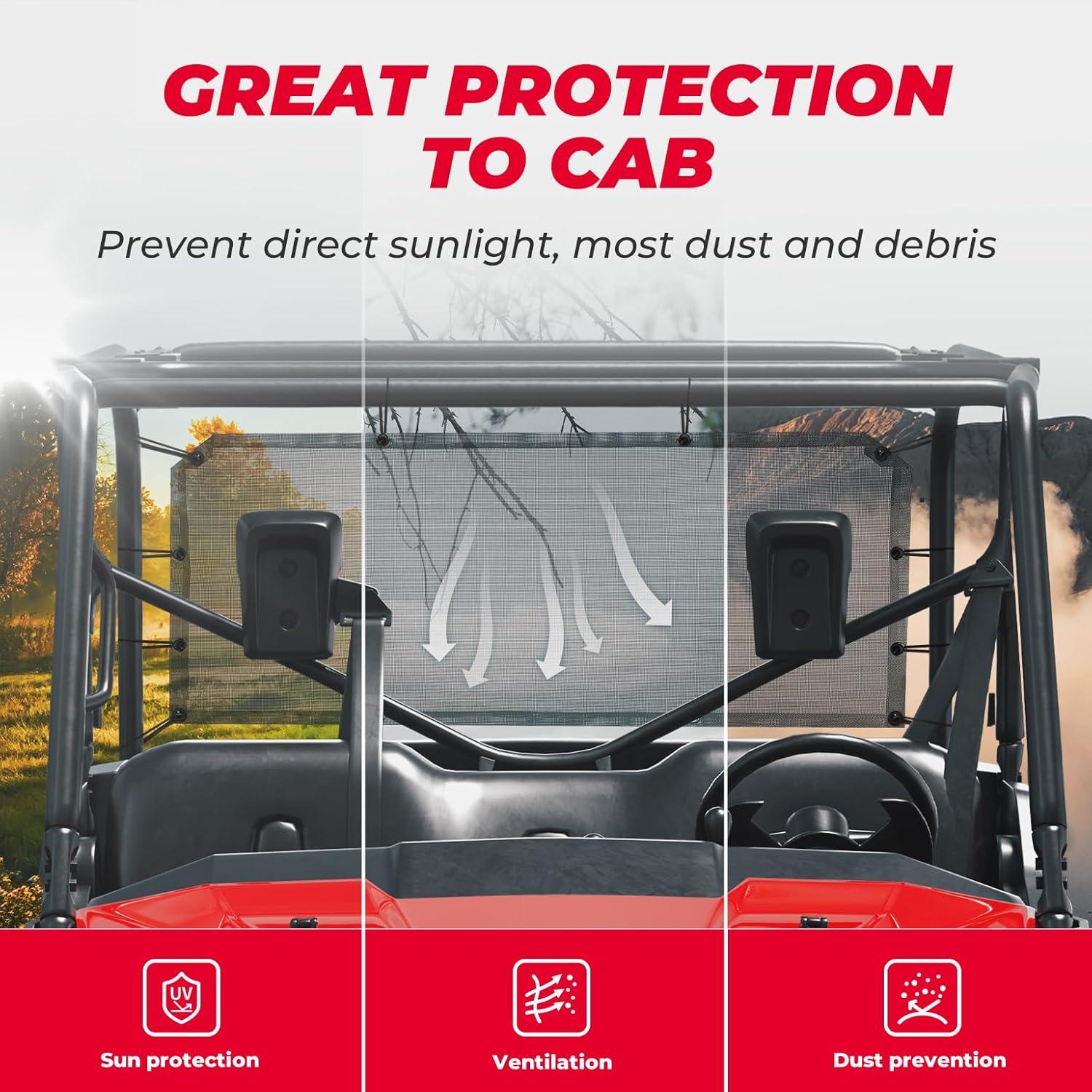 Sun and Dust Prevention: KEMIMOTO Rear Net gives convenient access to prevent direct sunlight and keep the cab cooler. Pioneer 1000 rear net protects you from trees and bushes. It also prevents dirt from accumulating in the cab