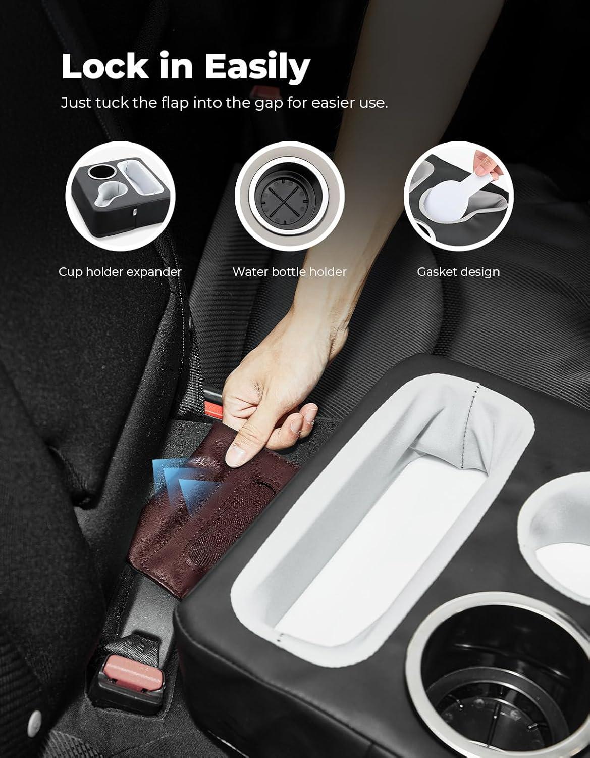 【Wipe Clean】Our car cup holder is crafted from long-lasting PU leather, offering not only effortless cleaning but also exceptional stain, sweat, and odor resistance. This ensures a comfortable and pristine cup-holding experience for you.