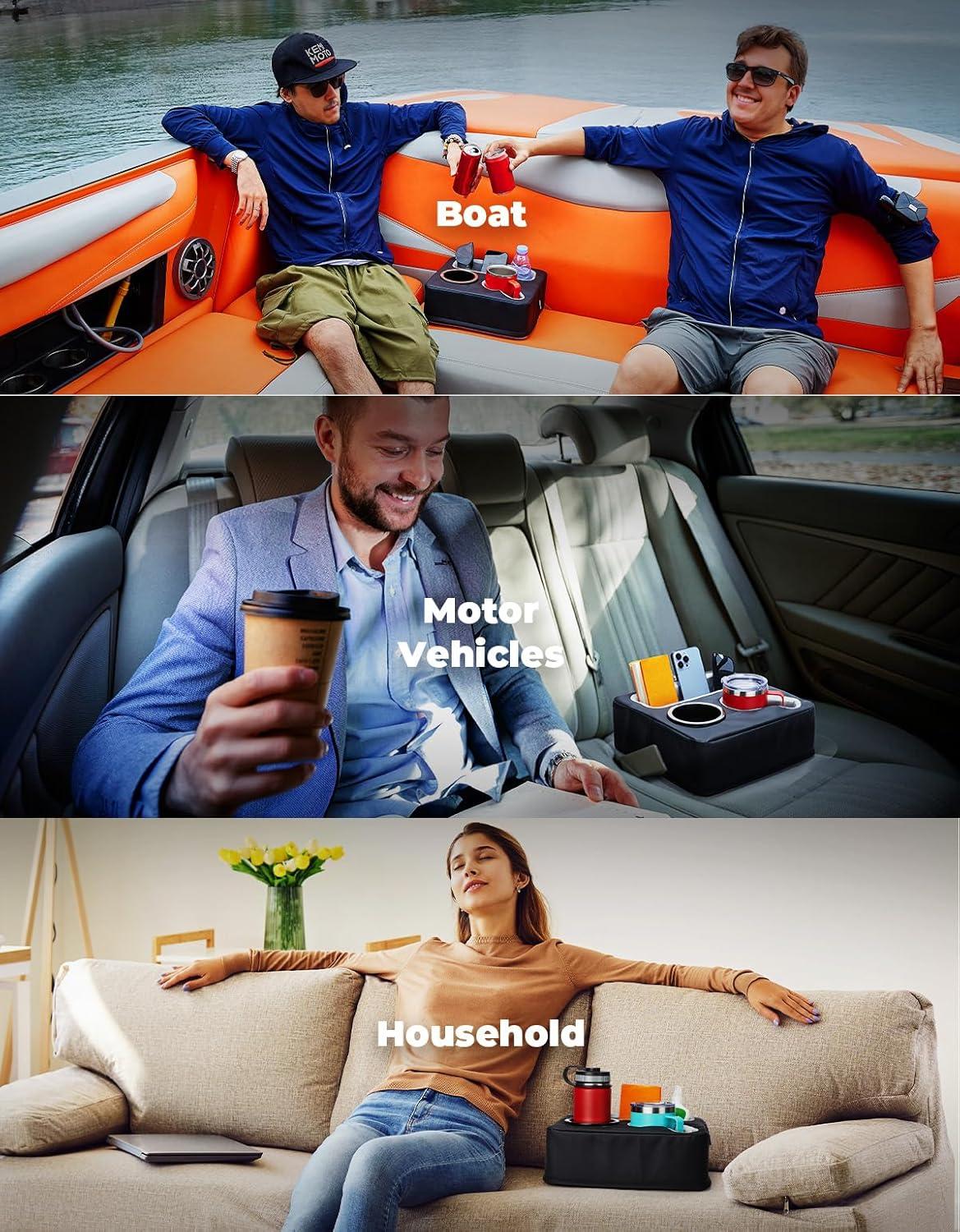 【Sturdy & Stable】This back seat car cup holder is crafted from high-quality material and foam padding, featuring a dual cup holder design. The drop flap holds ensure secure mounting on boat seats and car backseats, providing stability during even the roughest waves or journeys.