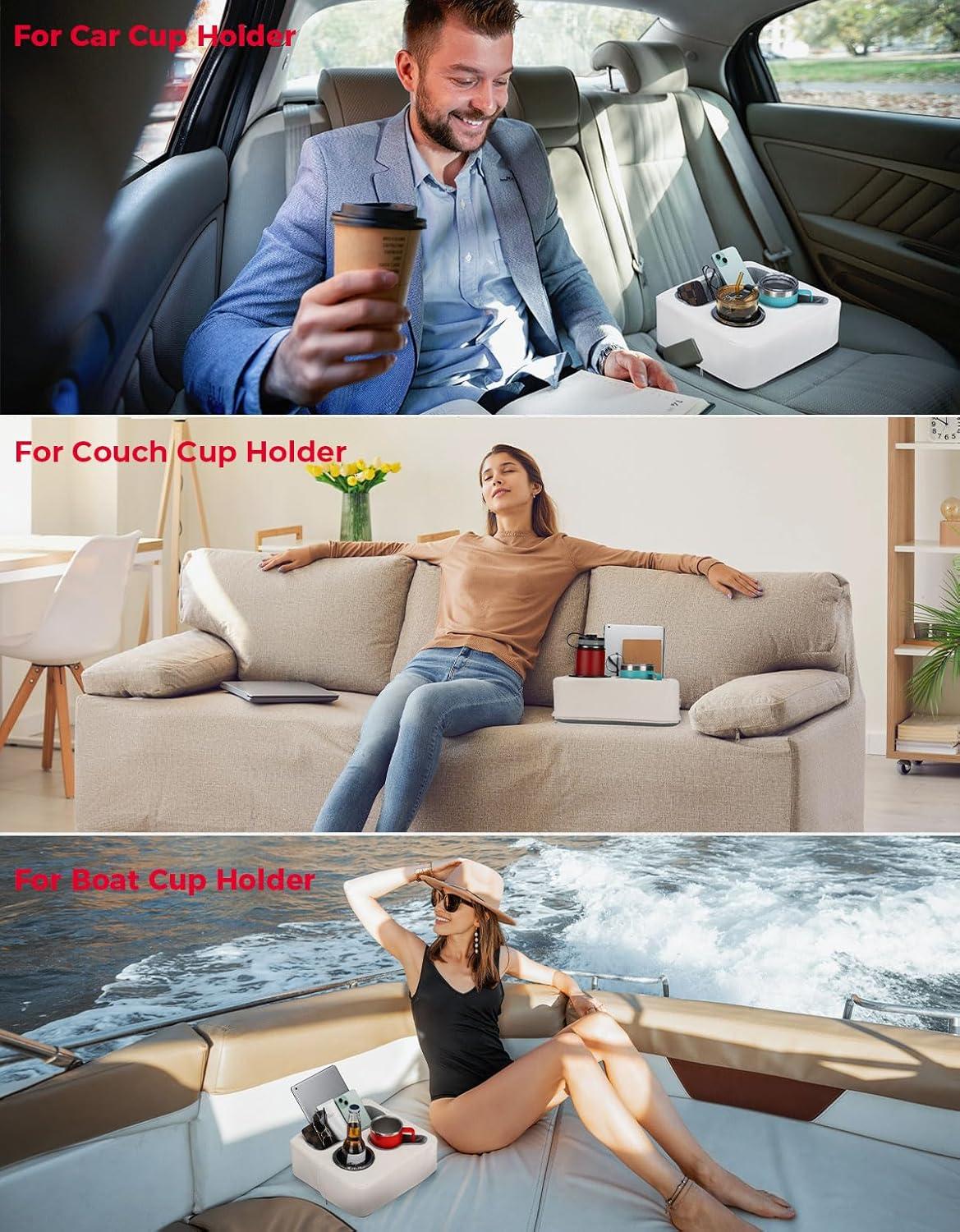 KEMIMOTO Back Seat Cup Holder for Car, Couch Cup Holder, Car Truck Boat Organizer, Couch Sofa Bed Expander Tray Holds Drinks, Snacks, Remote, Cell Mobile Phone (Black)(White)