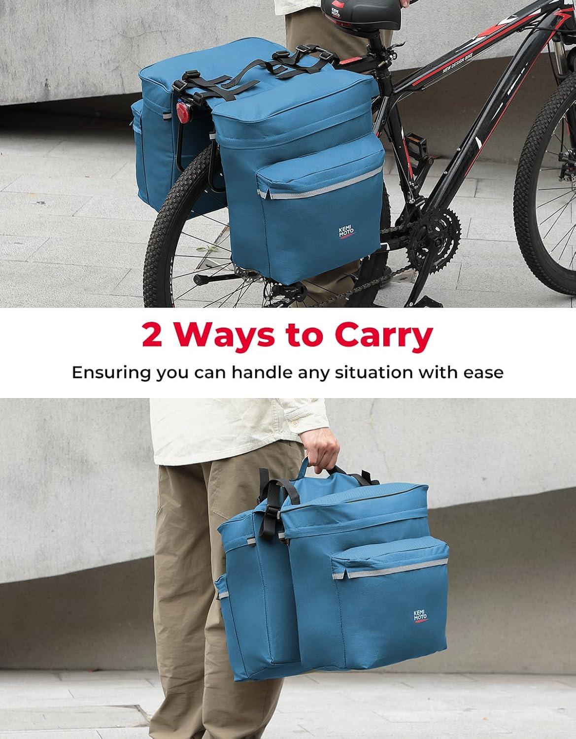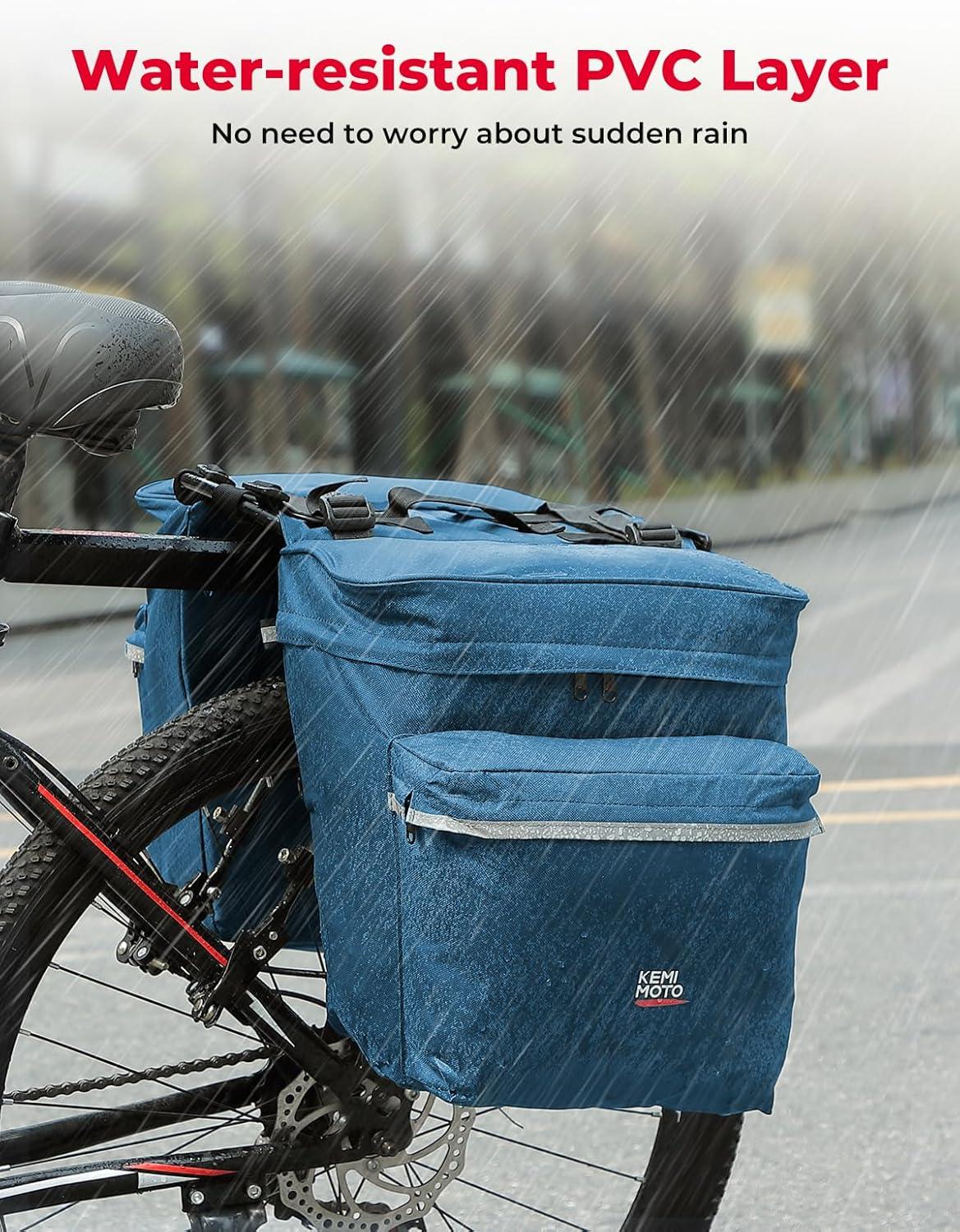KEMIMOTO Bike Bag Panniers with Rain Cover, 34L Waterproof Bicycle Saddle Bag for Rear Rack Mountain Biking Bags Storage, Ebike Accessories for Commuter Grocery Shopping Travel Carrier, Black(Blue Upgraded 34L)