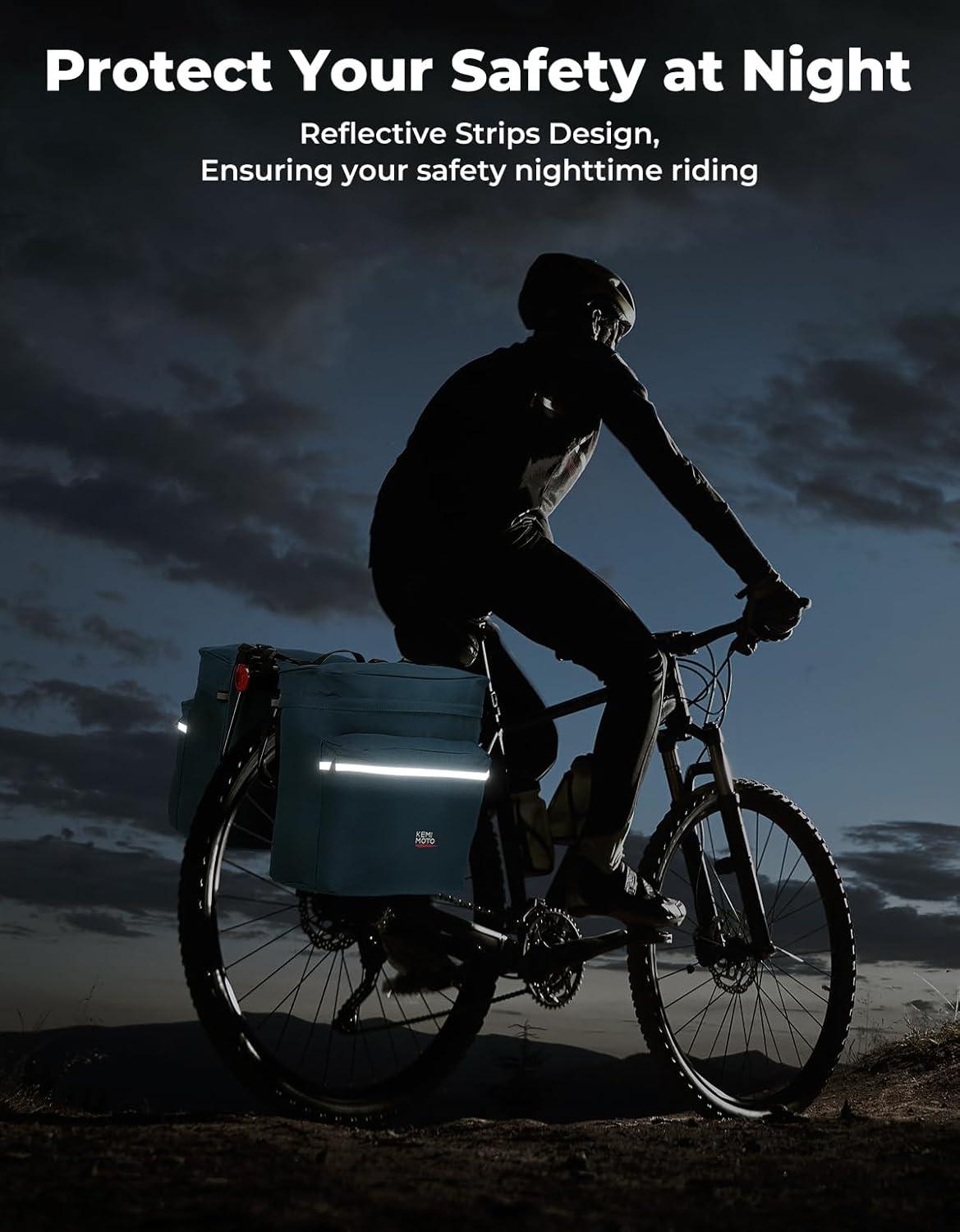 Large 34L Capacity: This KEMIMOTO pannier bike bags has been upgraded to a large capacity of 17L per bag, and the total capacity of 2 bags is UP to 34L. Includes 2 main compartments for each bag. Plus the 2 pockets on the outside, ideal storage for ebike accessories, daily essentials, biking gear. Ideal for grocery, commuting, and outdoor trips