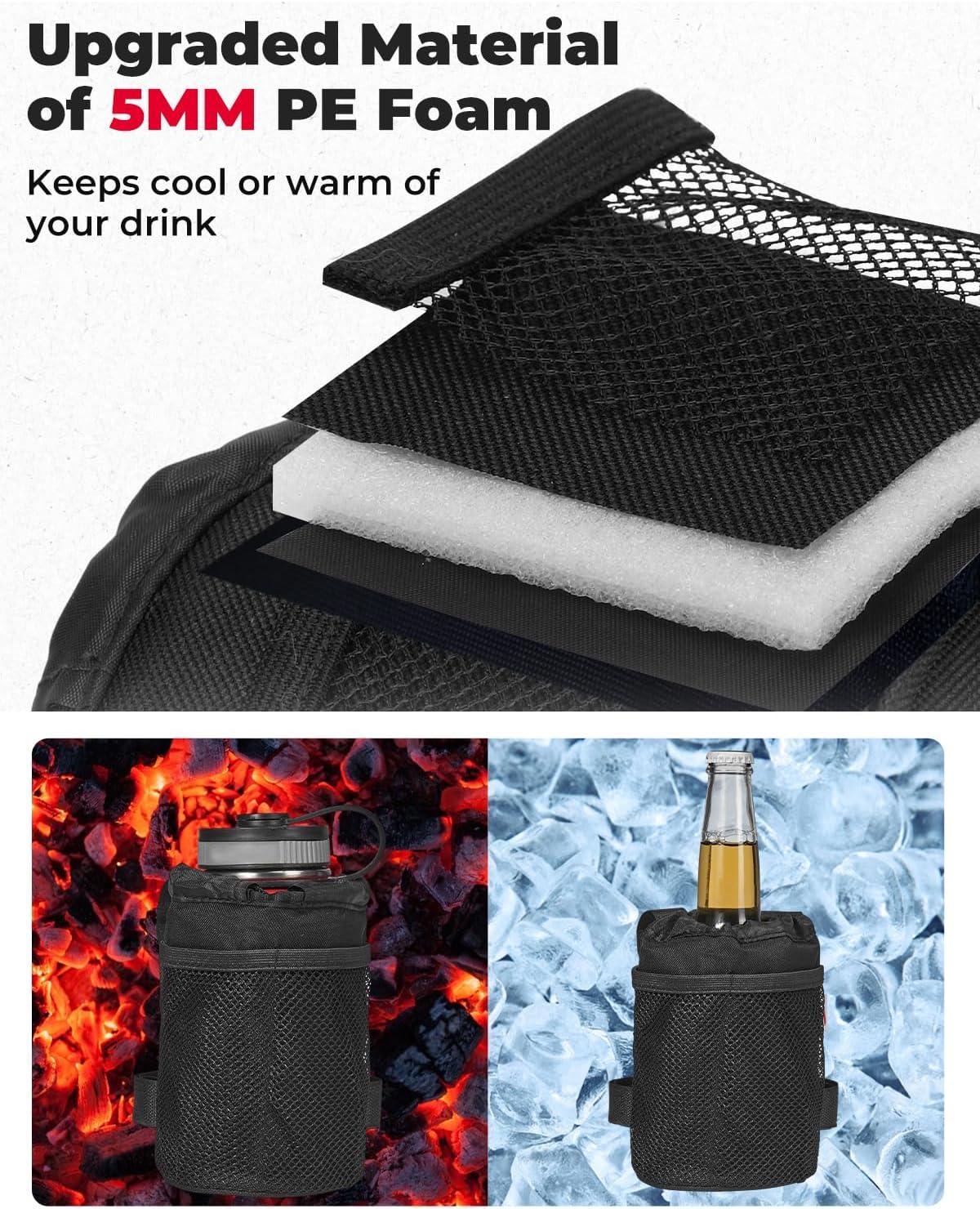 【Soft But Flexible】Different from other stainless steel or plastic bicycle cup holder, our scooter cup holder is made of premium Oxford fabric. This material offers superior durability, is easy to wash, and can withstand various environmental conditions.